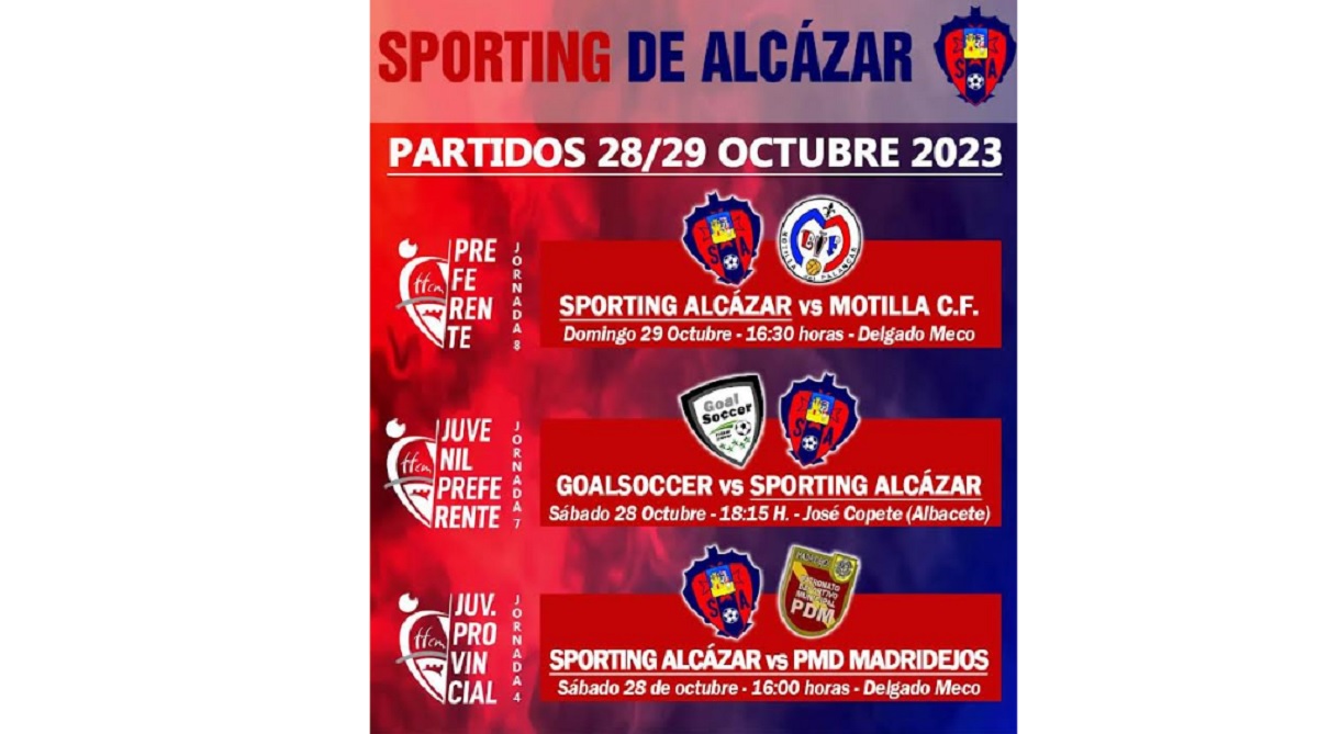 Partido bonito, a la par que complicado, el que tiene que afrontar el Sporting de Alcázar este domingo a partir de las 16:30 ante el Motilla CF. El equipo conquense lleva 5 victorias consecutivas, sumando 16 puntos y siendo 3º en la clasificación, igualado a puntos con el 2º, CD Pedroñeras.