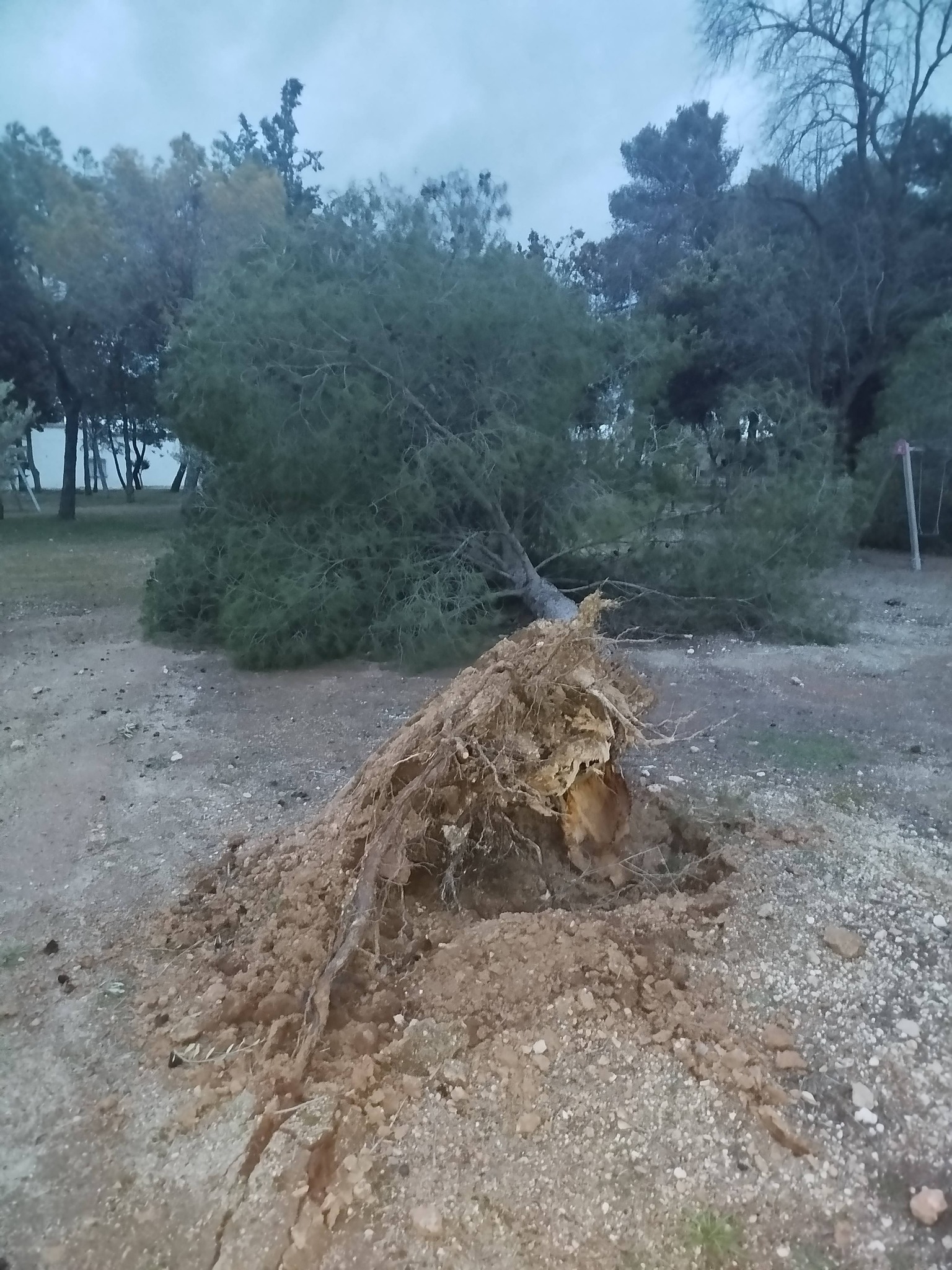 Los fuertes vientos y el temporal registrados durante la mañana de este miércoles han provocado la caída y arranque de varios árboles en Llanos del Caudillo, como consecuencia del temporal que está afectando a la comarca. Desde primeras horas del día, el Ayuntamiento ha activado las medidas preventivas necesarias para garantizar la seguridad de los vecinos.