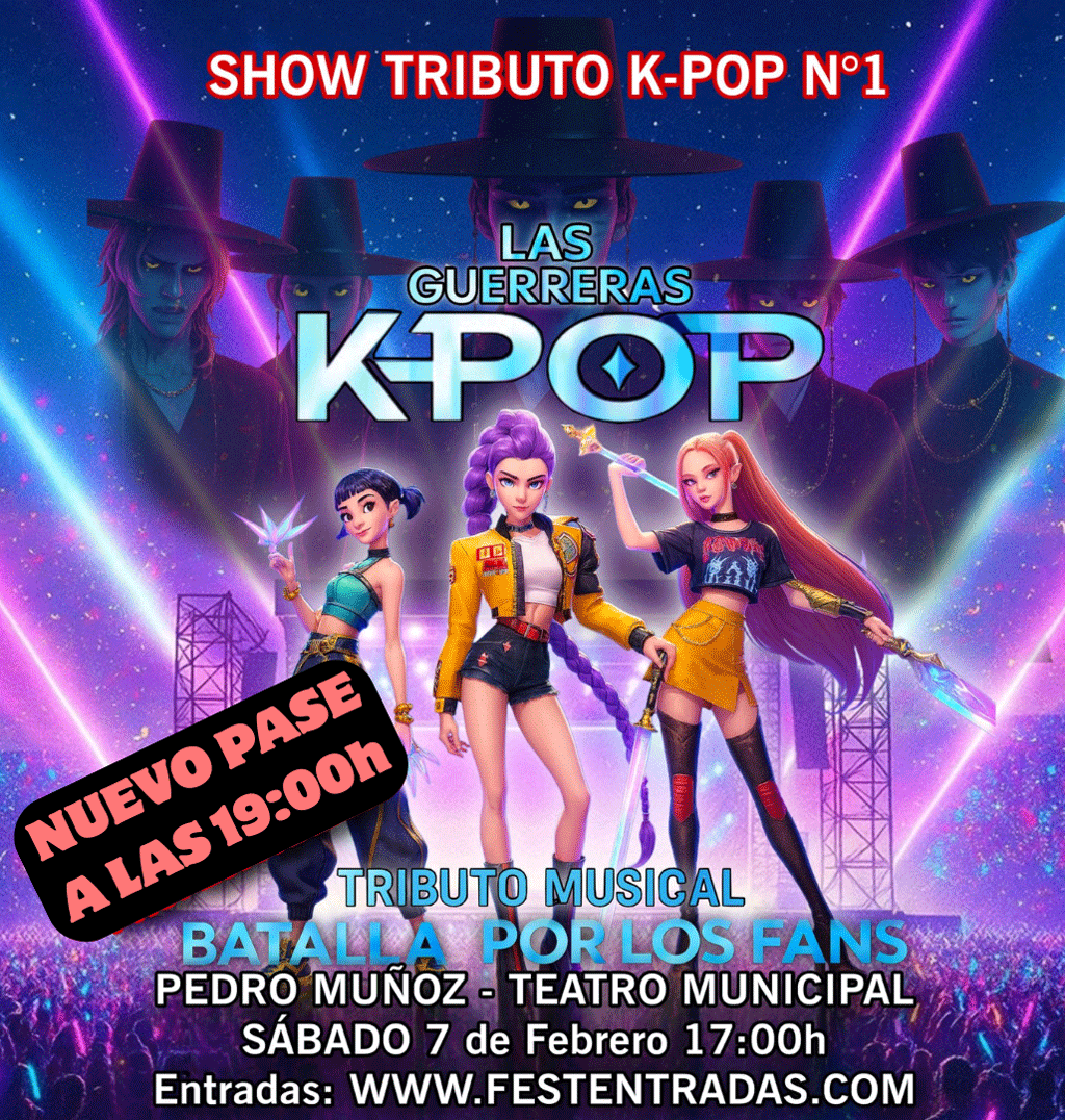 El fenómeno K-Pop llega a Pedro Muñoz el día 7 de febrero y arrasa antes de subir el telón. El espectáculo “Tributo Fenómeno K-Pop – Batalla por los Fans – Lucha de Guerreras” ha colgado el cartel de ENTRADAS AGOTADAS en su primer pase de las 17:00 horas, obligando a la organización a abrir una nueva función a las 19:00 horas el próximo sábado 7 de febrero en el Teatro Municipal de Pedro Muñoz.