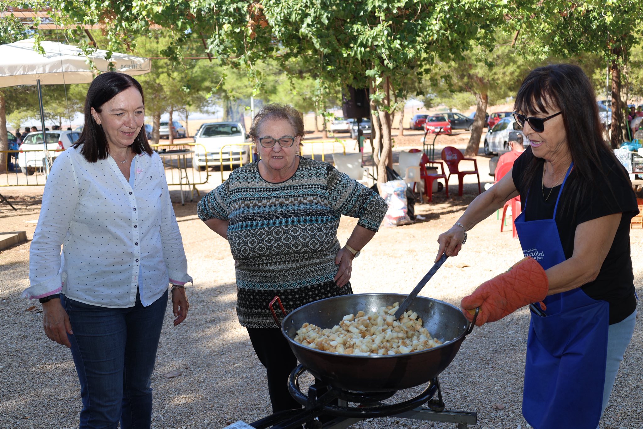 La alcaldesa, Rosa Melchor, y el concejal Javier Castellanos, acompañados por varios miembros de la Corporación Municipal, quisieron sumarse a esta jornada de convivencia junto al presidente de la Hermandad, Pedro Murat, con quien entregaron a cada cuadrilla una bolsa con un delantal, un sombrero, una gorra y un calendario, en agradecimiento por su implicación en la dinamización de esta jornada en la ermita de San Cristóbal.