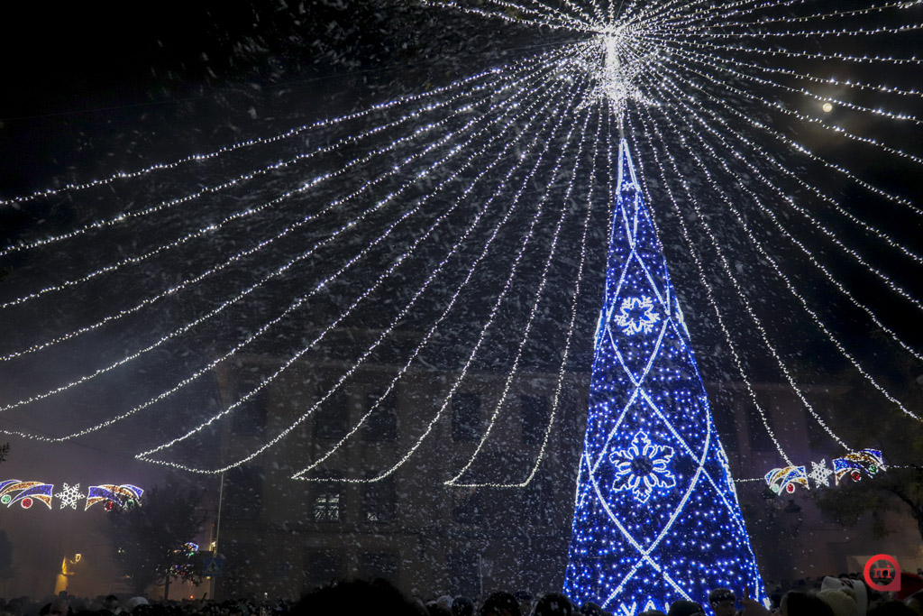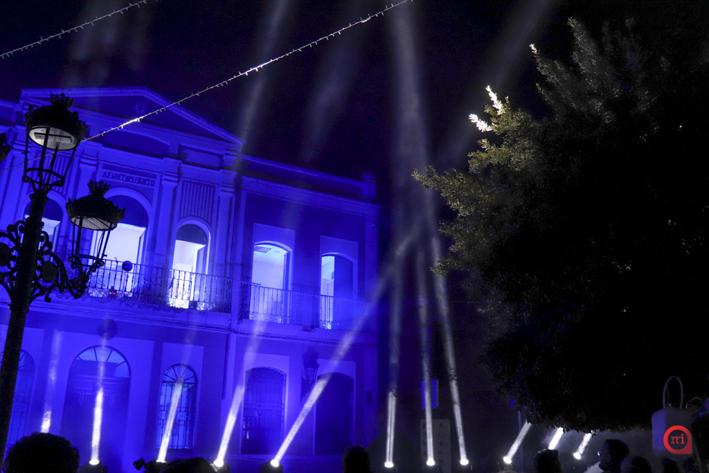 A continuación, la comitiva se desplazó a la Plaza de la Constitución, escenario del gran espectáculo piromusical que comenzó a las nueve de la noche. La fachada del Ayuntamiento se convirtió en una pantalla viva donde se proyectaron efectos especiales, luces estroboscópicas, humo, fuego y un relato navideño sincronizado con fuegos artificiales. El espectáculo culminó con el encendido de la iluminación navideña instalada en las calles del municipio.