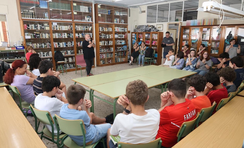 En esta ocasión, el moderador ha sido el narrador oral Félix Albo, reconocido a nivel nacional por su trayectoria en el arte de contar historias y por su trabajo en proyectos con adolescentes y temáticas sociales. Félix Albo ha guiado al alumnado en una reflexión sobre la obra ‘La Chica Pájaro’, de Sandy Stark-McGinnis, una novela que aborda el proceso emocional de una niña que llega a una casa de acogida y cómo lidia con su pasado mientras empieza a mirar hacia el futuro. La elección del libro responde a su capacidad para conectar con adolescentes a través de un relato íntimo y lleno de emociones, que invita al diálogo sobre la identidad, el abandono y la esperanza.