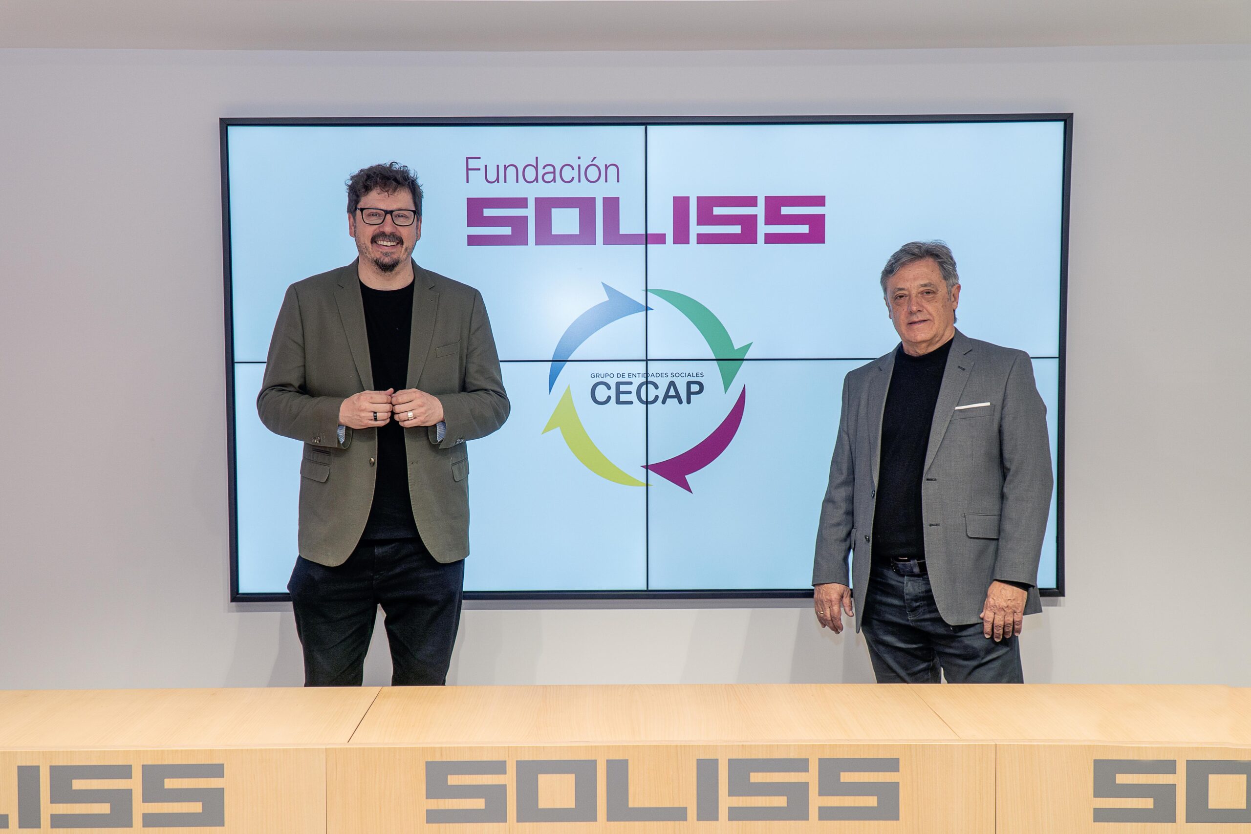En la mañana del lunes 29 de enero, en la sede central de Soliss, se ha celebrado el acto protocolario de la firma de la renovación del acuerdo entre Fundación Soliss y la Fundación CIEES para llevar a cabo la IX Edición de Futurempleo, que ha contado con la presencia de Andrés Martínez, presidente del Grupo de Entidades Sociales CECAP y César Duro, director de Fundación Soliss.