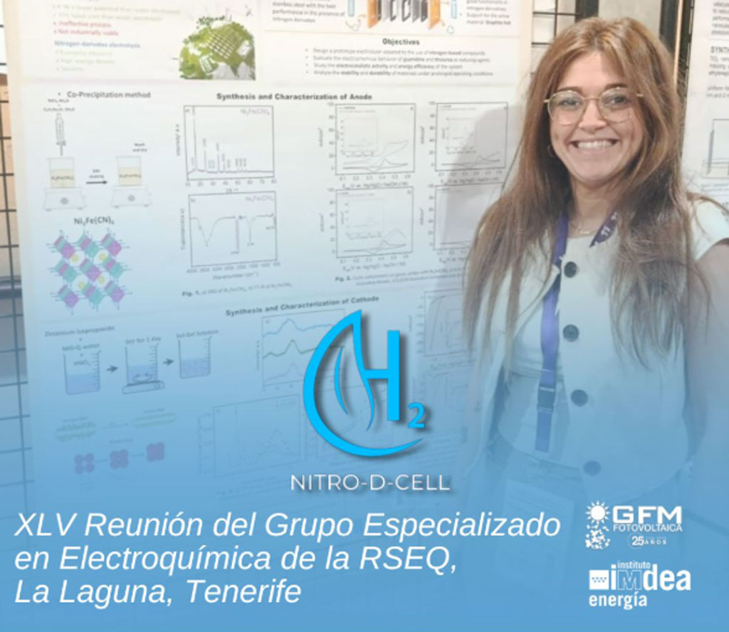 GFM Fotovoltaica, empresa especializada en energía solar situada en Villacañas, ha sido la coordinadora del proyecto NITRO-D-CELL junto al Instituto IMDEA Energía. Un proyecto de producción de hidrógeno verde expuesto al público en la XLV Reunión del Grupo Especializado en Electroquímica de la Real Sociedad Española de Química (RSEQ), que tuvo lugar en La Laguna, Tenerife, con la participación de María Cuartero y Enrique García-Quismondo por parte de IMDEA Energía.
