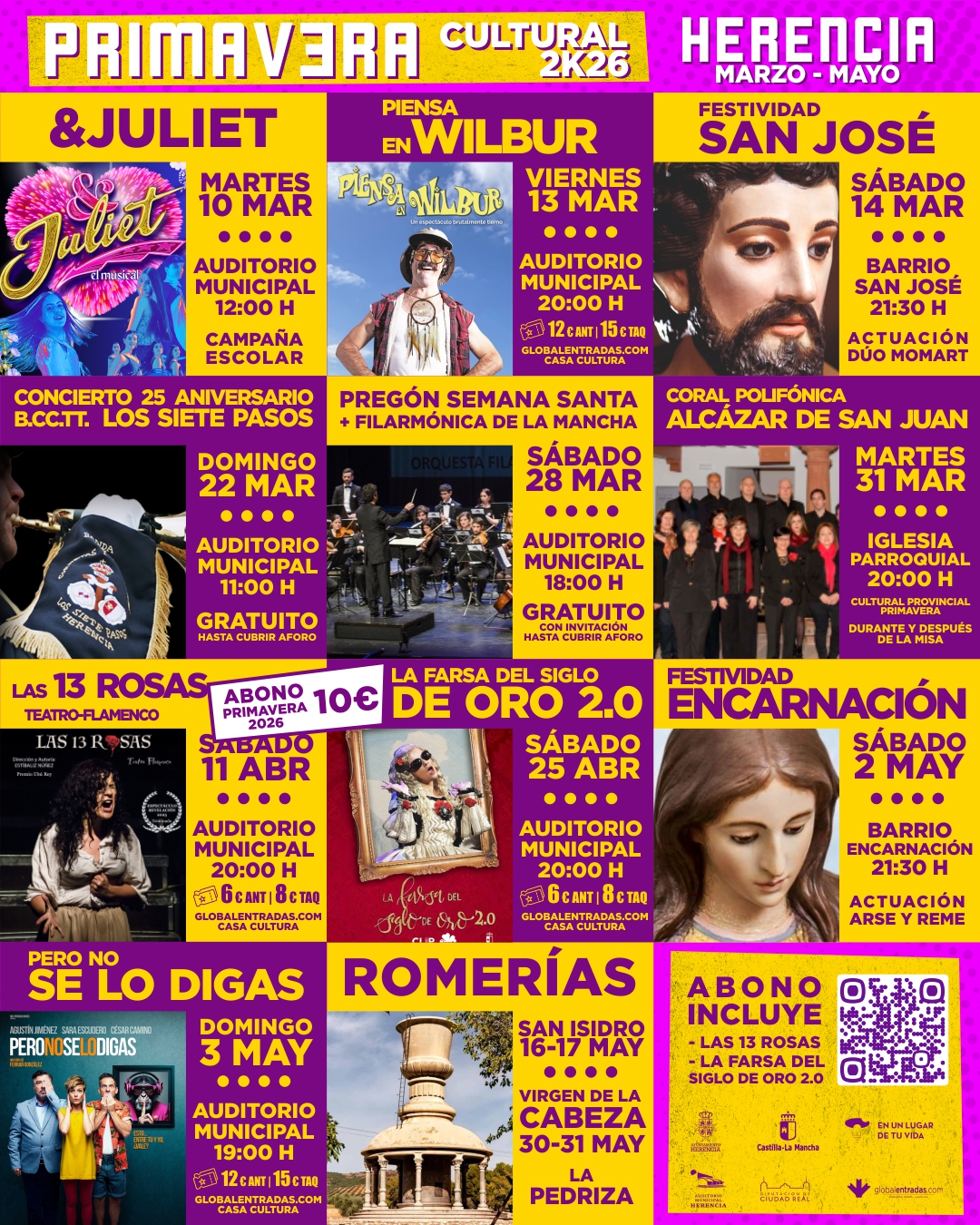 El área de Cultura ha presentado este miércoles la Programación Cultural de Primavera en Herencia, una propuesta pensada para todos los públicos y edades que combina teatro nacional, festividades de barrio, eventos cofrades o las tradicionales romerías.