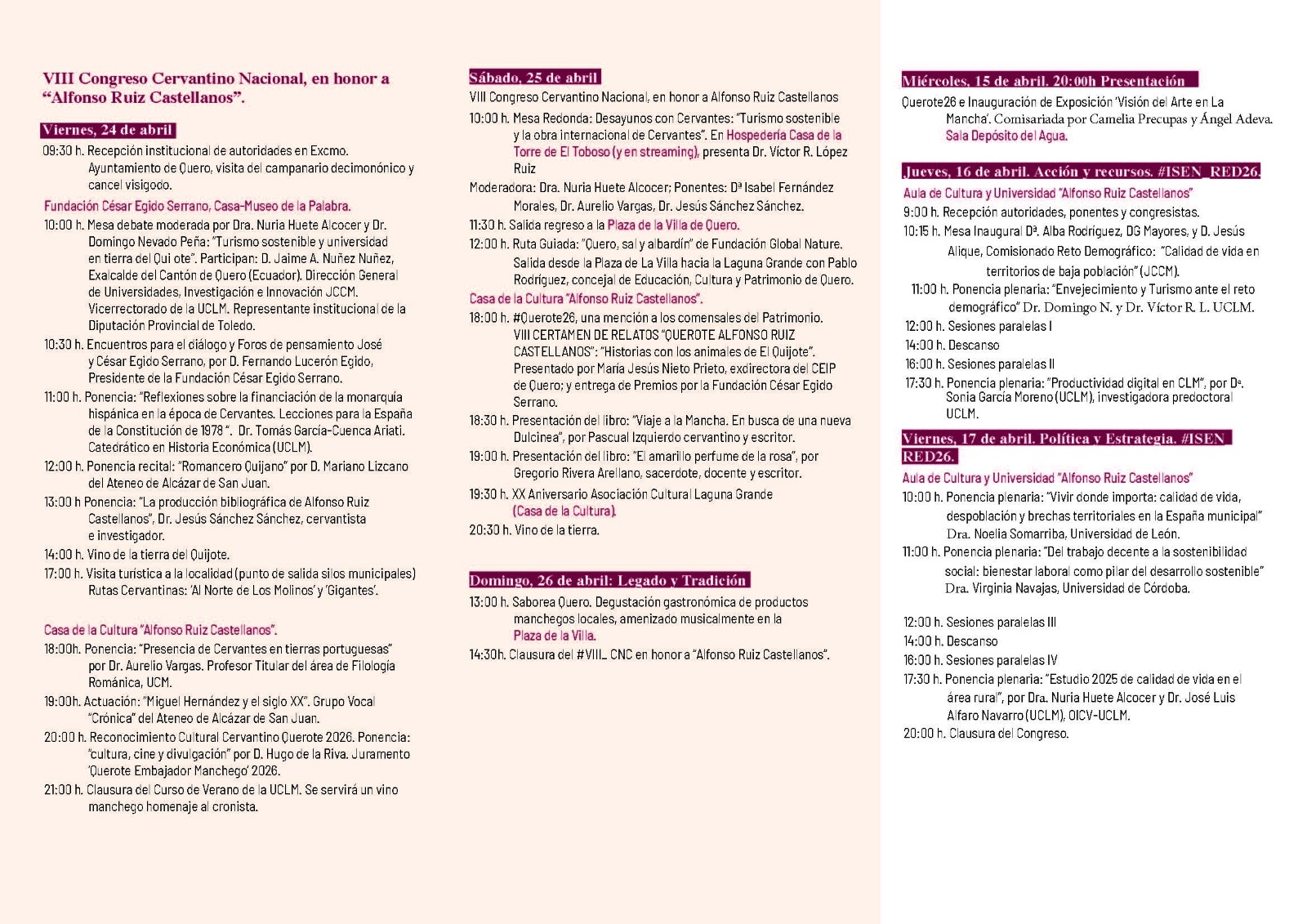 La Semana Universitaria y Cervantina se ha convertido, en palabras del regidor, en una herramienta clave para “poner en valor el patrimonio natural, cultural y etnográfico” de la zona, implicando tanto a instituciones como a la ciudadanía en una programación que combina reflexión, identidad y proyección exterior.