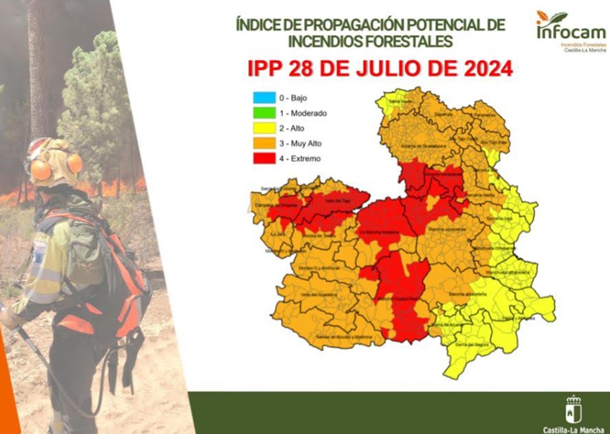 Índice de Propagación Potencial de Incendios Forestales para este 28 de julio en la región