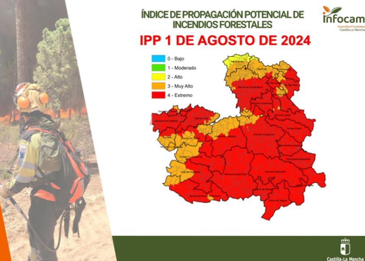 Índice de Propagación Potencial de Incendios para este 1 de agosto en la región