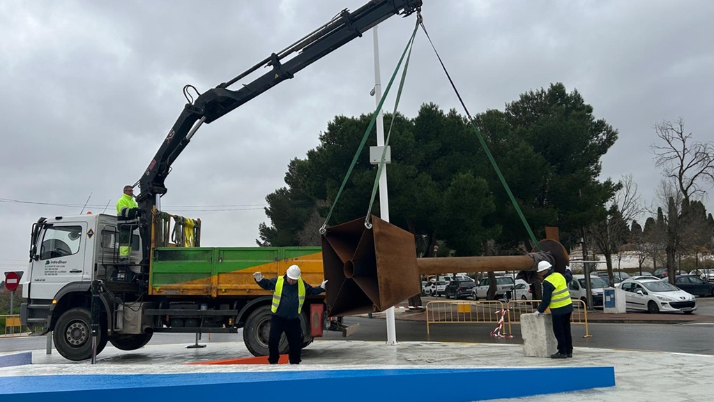 El patrimonio artístico de Alcázar de San Juan cuenta desde hoy con un nuevo referente. La alcaldesa Rosa Melchor, junto a los concejales Javier Ortega y Cristina Perea, ha supervisado los trabajos de instalación de la veleta diseñada por el recordado artista alcazareño Isidro Parra, que desde este jueves preside la rotonda de acceso a la ciudad por el cementerio municipal.
