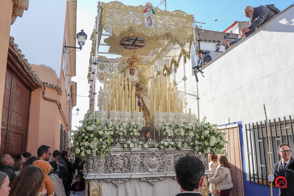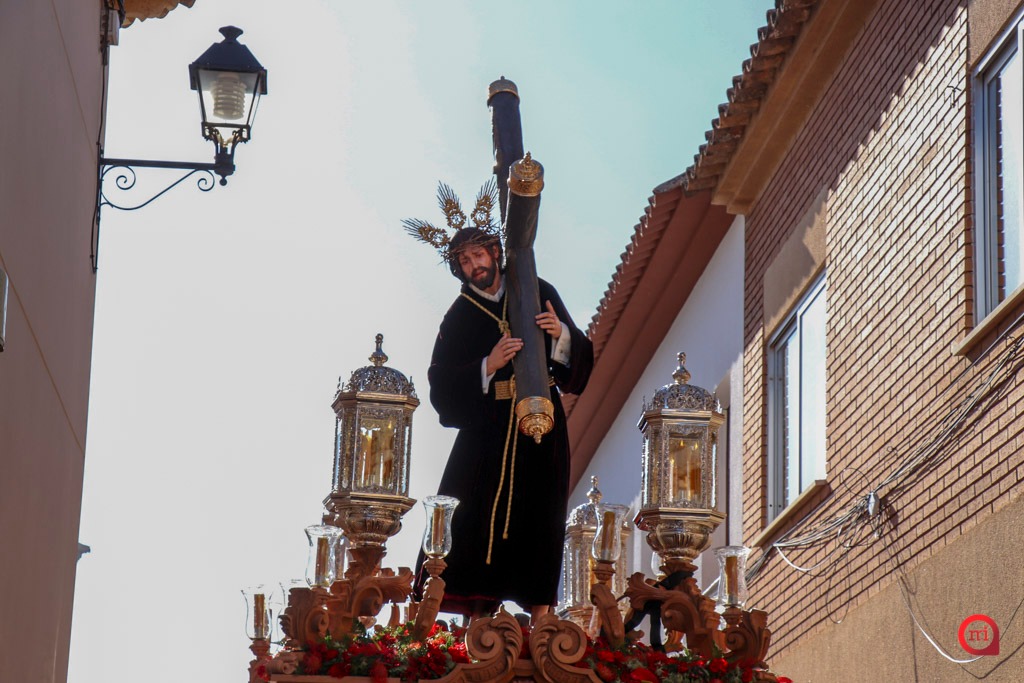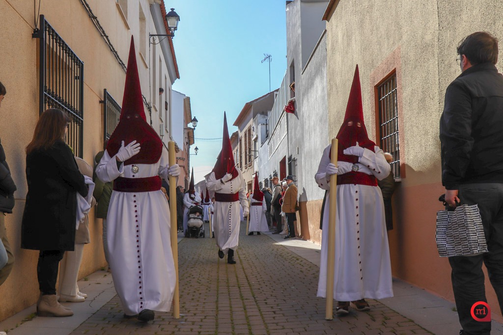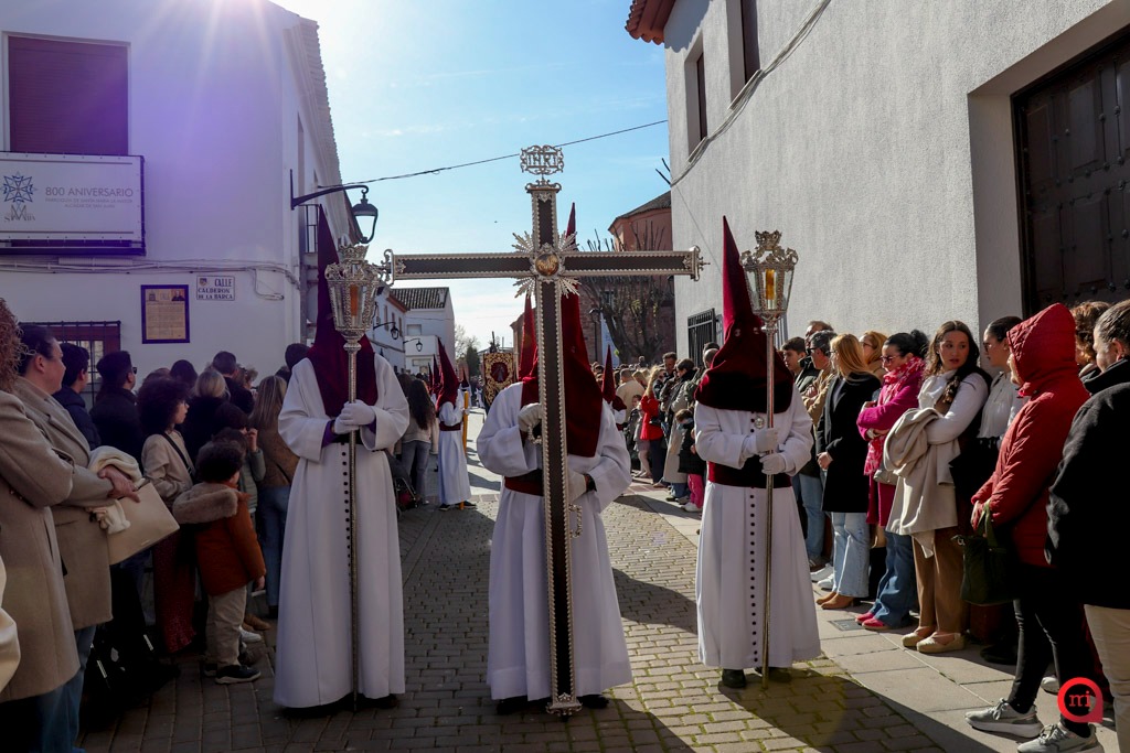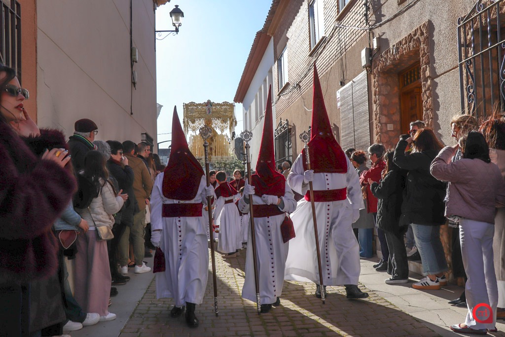 A las seis en punto, desde la Parroquia de Santa María la Mayor, ha comenzado la estación de penitencia en un ambiente de gran expectación. Numerosos vecinos y visitantes se han congregado en la plaza para presenciar los primeros compases del desfile, en los que los costaleros y costaleras han alzado a los titulares de la Hermandad entre aplausos y emoción, iniciando así un recorrido cargado de simbolismo, repartiendo perdón y salud por las calles de la localidad.