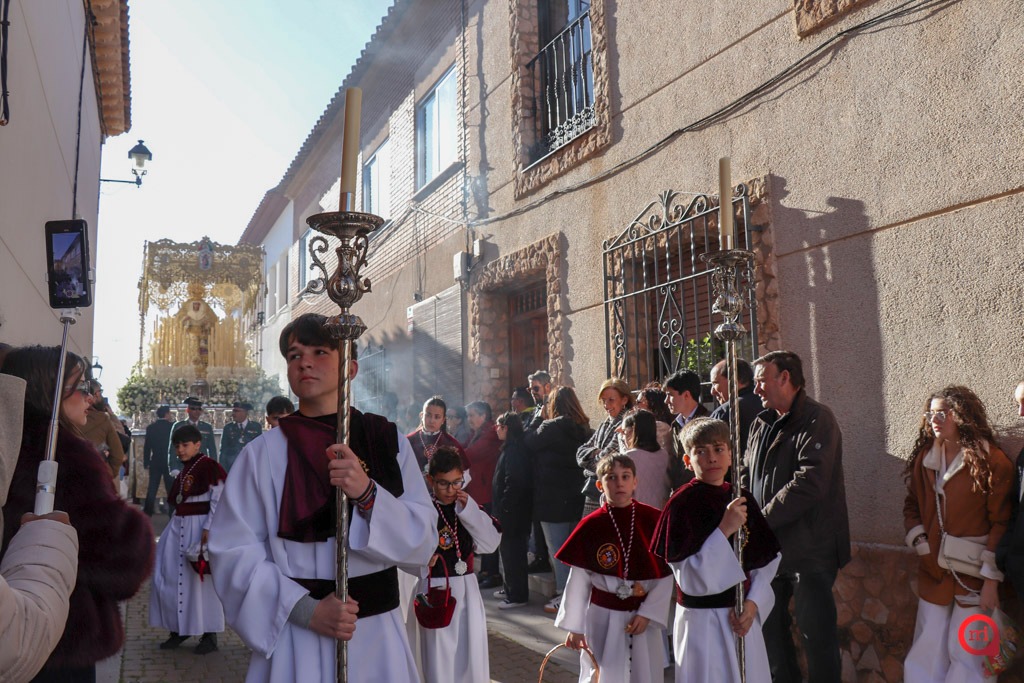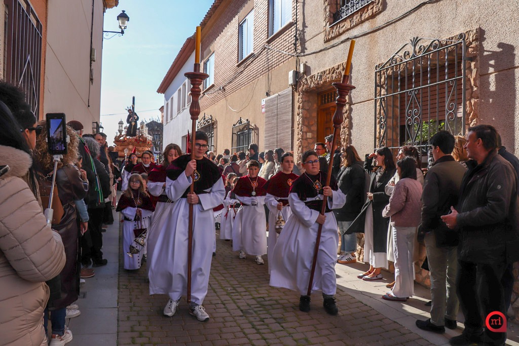 El cortejo ha seguido su itinerario habitual, dejando momentos de especial sensibilidad como la parada ante el convento de las Hermanas de la Cruz, donde las residentes han contemplado con profunda devoción el paso de las imágenes. Igualmente emotiva ha sido la llegada a la Ermita del Cristo de Villajos, donde los titulares han rendido saludo al Cristo y han sido recibidos por miembros de la Hermandad de Nuestro Padre Jesús Nazareno, en una escena que cada año congrega a numerosos fieles.