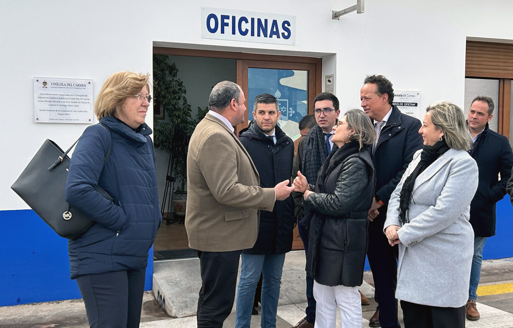 En esta visita, Julia Mercedes Leal y Julián Martínez han estado acompañados por miembros del consejo rector de Vinícola del Carmen, así como por el alcalde criptanense, Santiago Lázaro, la delegada de Agricultura, Amparo Bremad, y la directora general de Producción Agroalimentaria y Cooperativas, Elena Escobar.