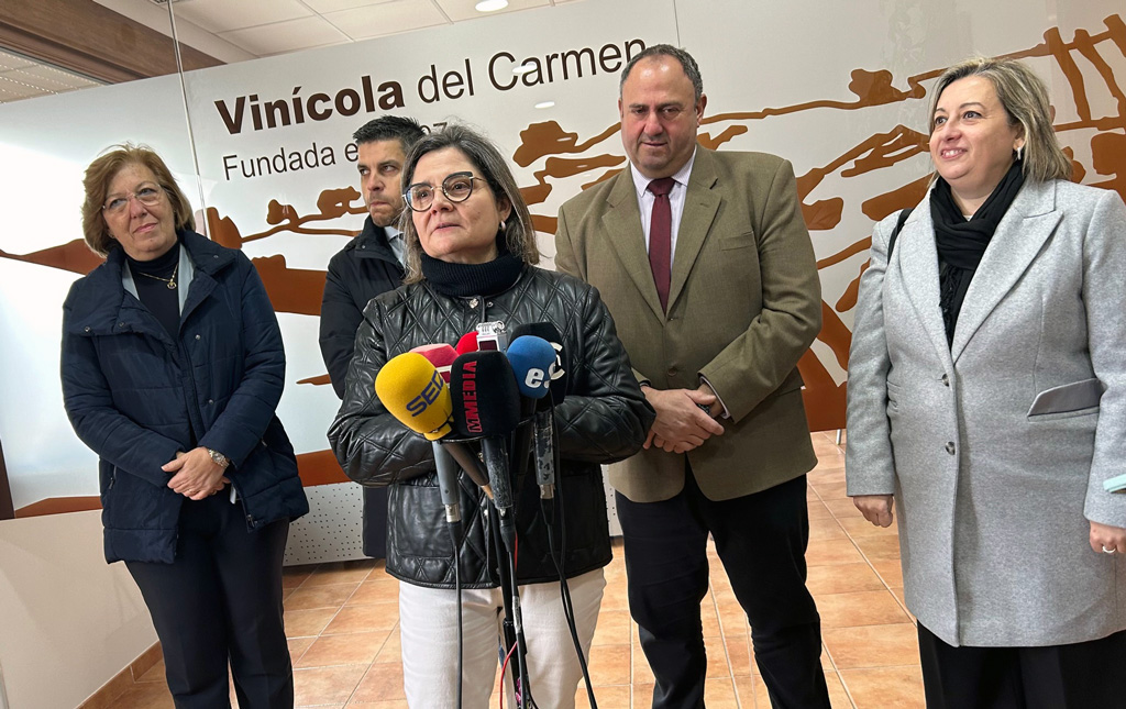 La presidenta del consejo rector de Vinícola del Carmen, Julia Mercedes Leal, ha instado al consejero de Agricultura, Ganadería y Desarrollo Rural, Julián Martínez, a seguir apoyando al sector vitivinícola y a las cooperativas para rentabilizar las explotaciones de los agricultores.