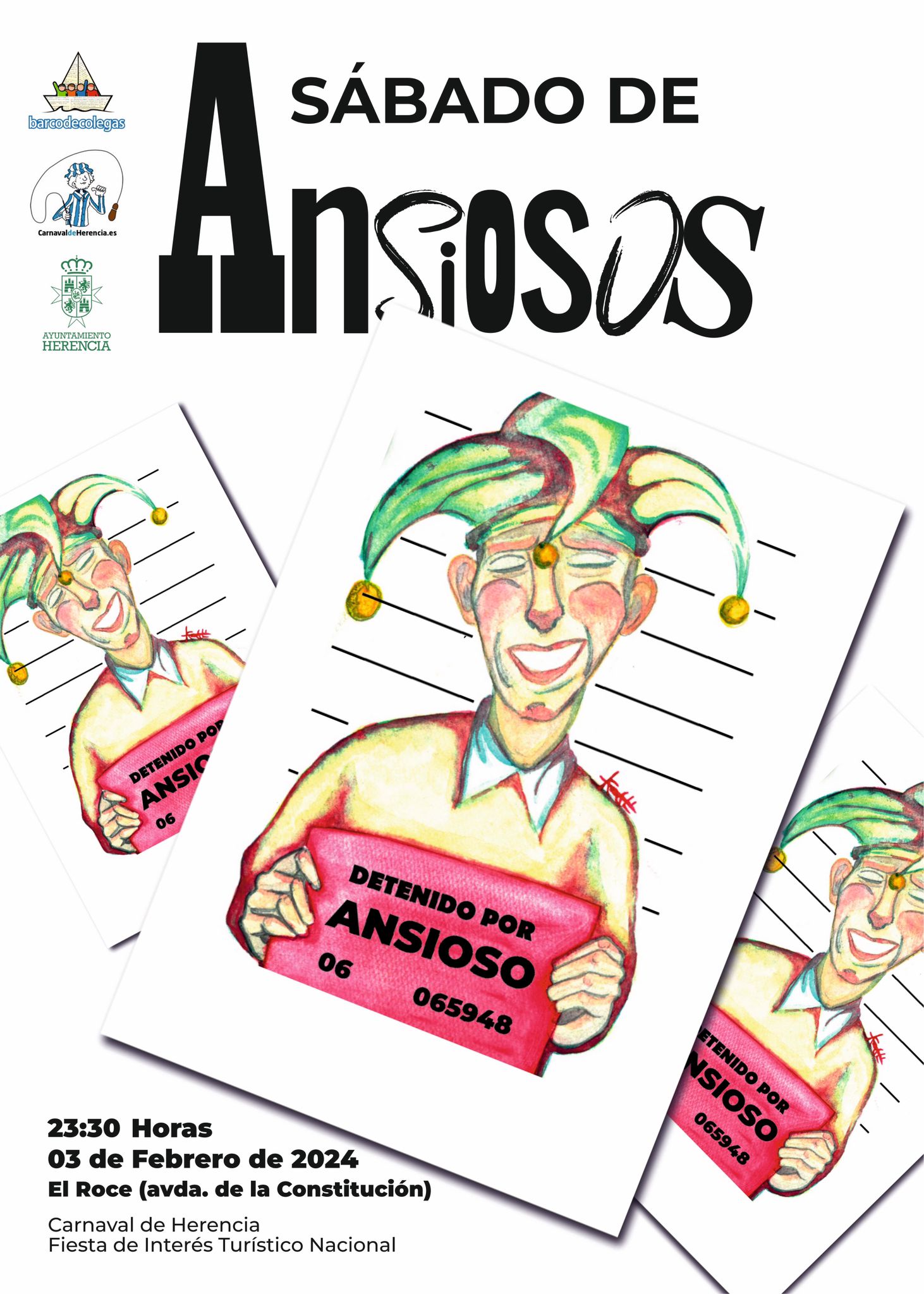 En esta ocasión el cartel es una técnica mixta donde mezcla una ilustración en acuarela tradicional con composiciones tipográficas y elementos digitales en la cual su autora ha querido plasmar la esencia del carnaval como una fiesta transgresora, donde la alegría, la broma y la parodia campan a sus anchas con toda libertad. Una fiesta en la cual, paradójicamente, como la figura del bufón protagonista del cartel, nos quitamos la careta para ser nosotros mismos, para buscar con ansia nuestra propia libertad, nuestro autentico ser que se libera de las normas sociales que durante el resto del año nos encorsetan y nos atan. Una fiesta donde lo que prima es la risa y la burla y que en Herencia, como no puede ser de otra manera, se busca con ansias y deseo y de la que el Sábado de los Ansiosos se convierte en ese pistoletazo de salida oficial, motivo por el cual, como ya es tradicional, este día tendrá lugar la celebración del “Año Nuevo Herenciano” con la ingesta de las doce “ugautreras” realizadas a partir de uno de los dulces más típicos del carnaval de Herencia, para parodiar el inicio del Año Nuevo y la toma de las tradicionales doce uvas de fin de año.