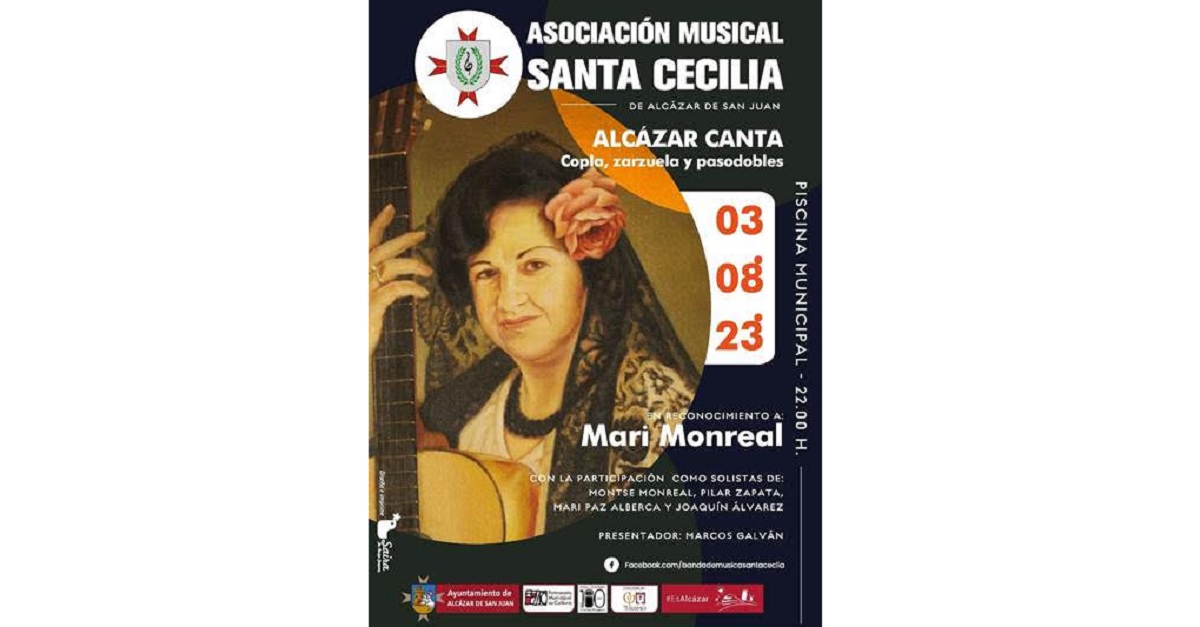 En agradecimiento a esta colaboración y en reconocimiento a la larga trayectoria y exitosa carrera de nuestra artista, el jueves 3 de agosto, a las 22:00h en la piscina municipal, los músicos de la Asociación Musical Santa Cecilia rendirán homenaje a nuestra artista, con un concierto especial, que con el título “Alcázar canta: copla, zarzuela y pasodoble. Homenaje a Mari Monreal” contará con la colaboración de Montse Monreal, Pilar Zapata, Mari Paz Alberca y Joaquín Álvarez, siendo el maestro de ceremonias Marcos Galván.