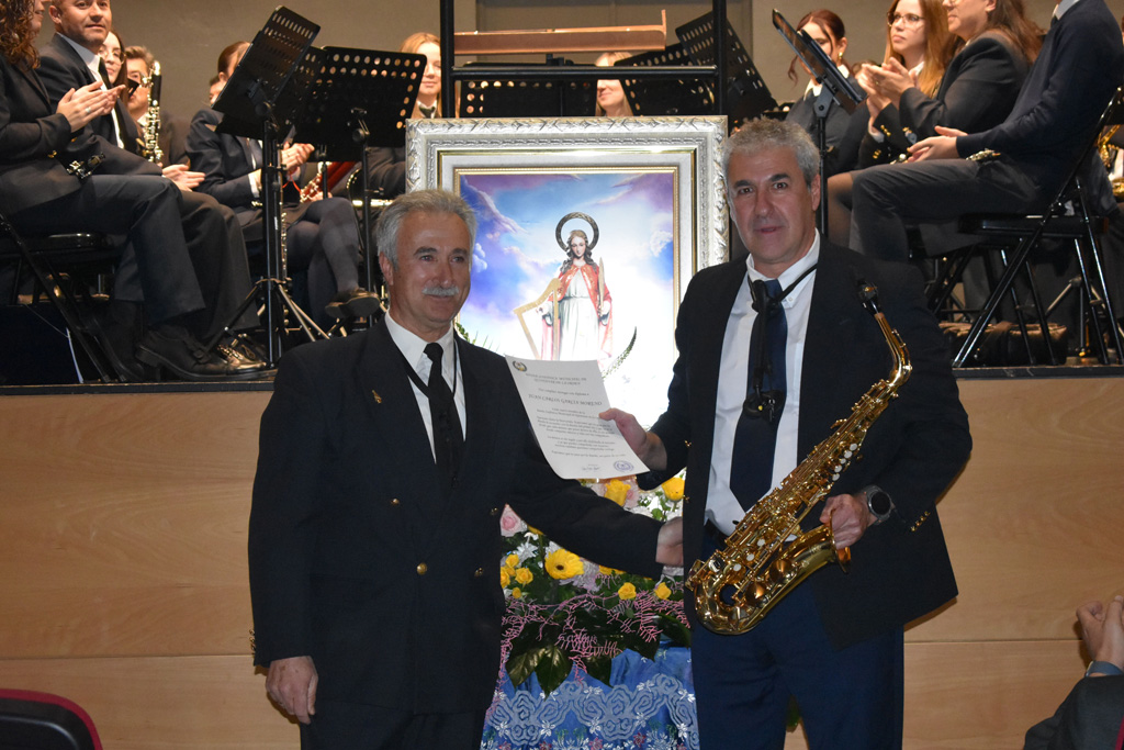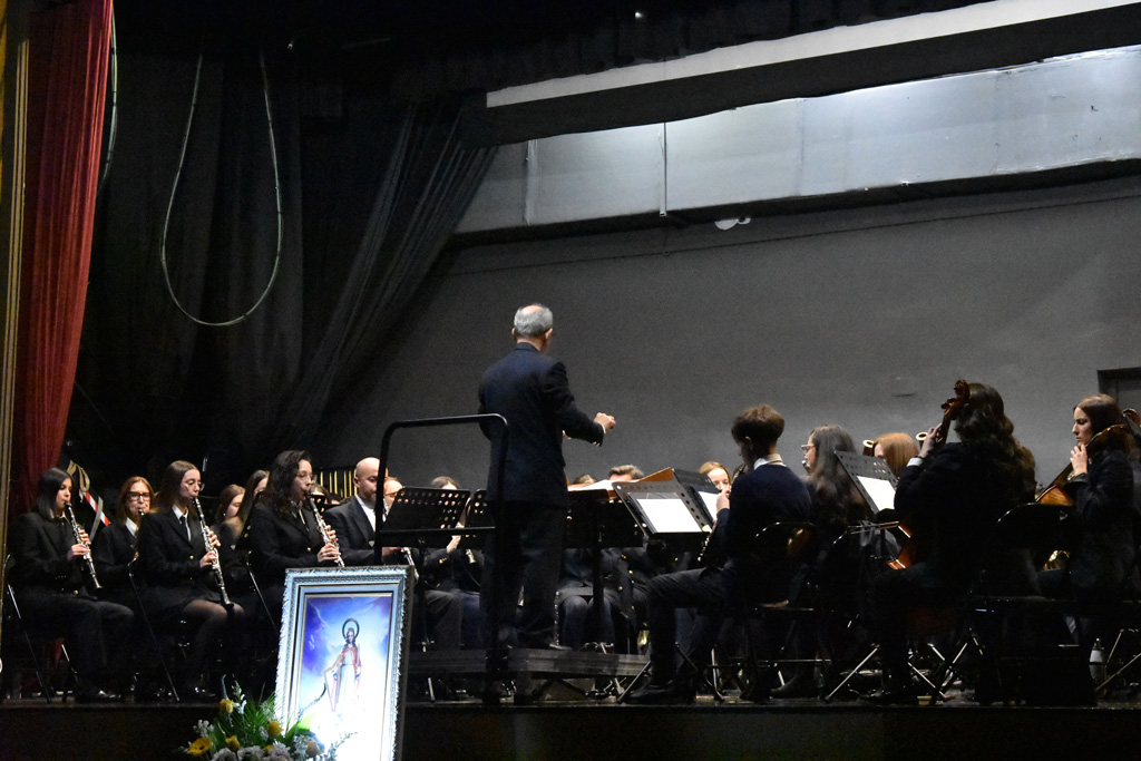 Bajo la batuta de Sebastián Heras Romero, la banda ofreció un programa cuidadosamente seleccionado que combinó clásicos de la música española, bandas sonoras y éxitos internacionales. La actuación comenzó con “Raposo – Marcha Militar” de Julián Palanca, seguida de “Gigantes y Cabezudos – Selección de la Zarzuela” de M. F. Caballero, y continuó con “For a Few Dollars More” de Ennio Morricone, en el arreglo de Ted Parson. El pasodoble “Maestro Dionisio” de Agripino Lozano completó la primera parte del espectáculo.