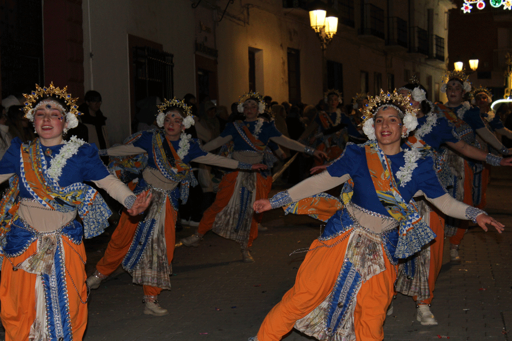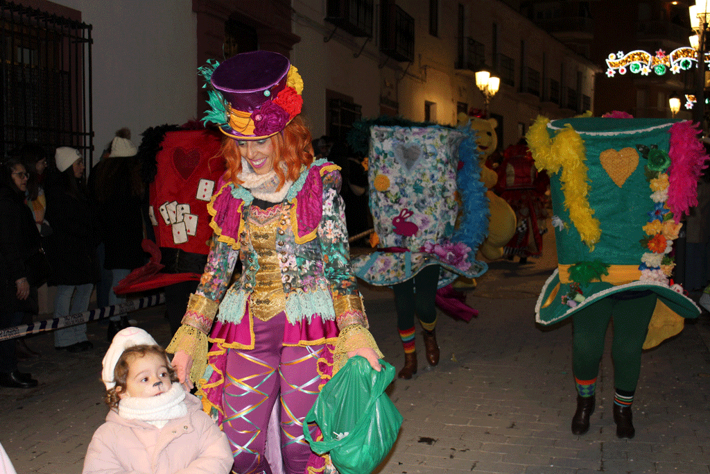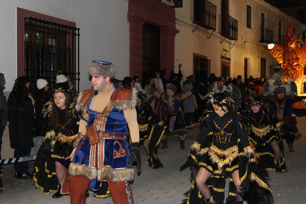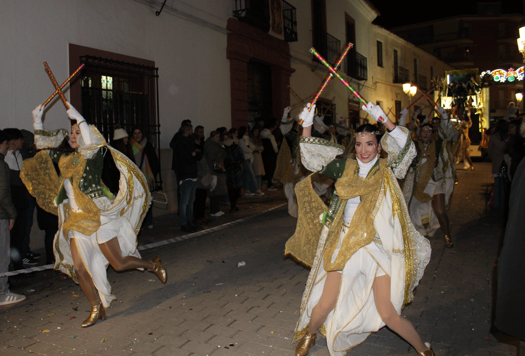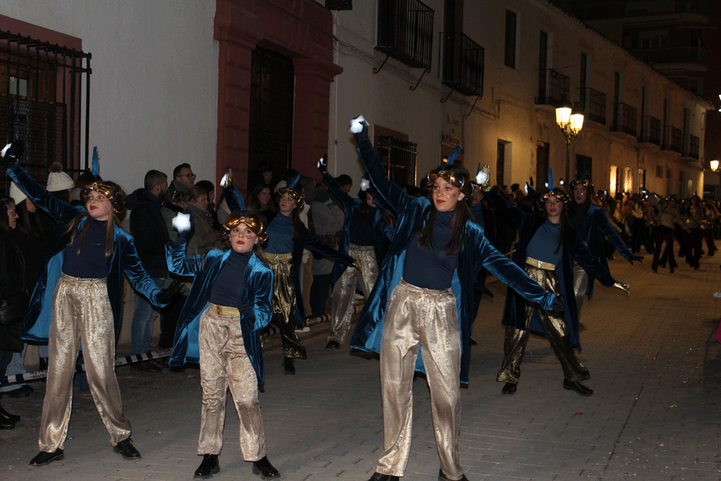 La cabalgata estuvo compuesta por un total de nueve carrozas, con la participación de dos peñas locales, dos bandas musicales y cuatro escuelas de baile. A lo largo del recorrido se repartieron más de 1.600 kilos de caramelos y 4.000 regalos.