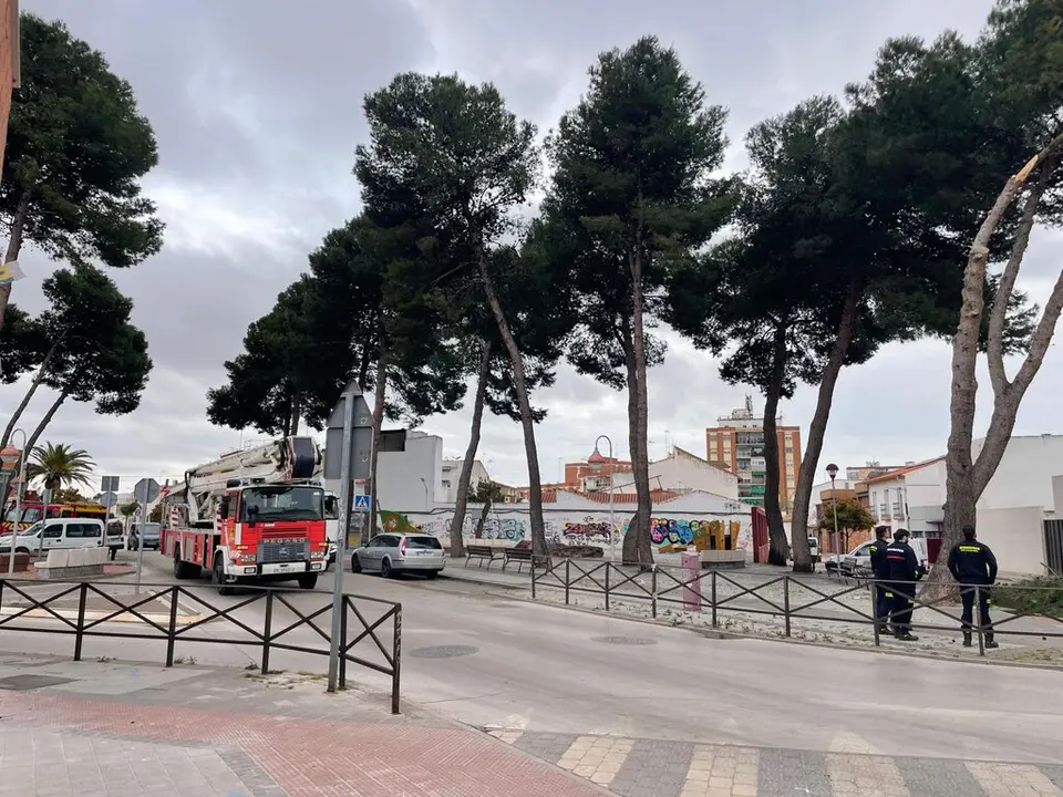 Este viernes, en torno a las 11:00 horas, bomberos y operarios municipales acudieron a la plaza para retirar las ramas caídas y cortar el tronco dañado. Sin embargo, los trabajos en altura tuvieron que suspenderse temporalmente debido al viento, que dificulta la intervención y aumenta el riesgo. Los equipos permanecerán vigilantes y retomarán las actuaciones en los próximos días.