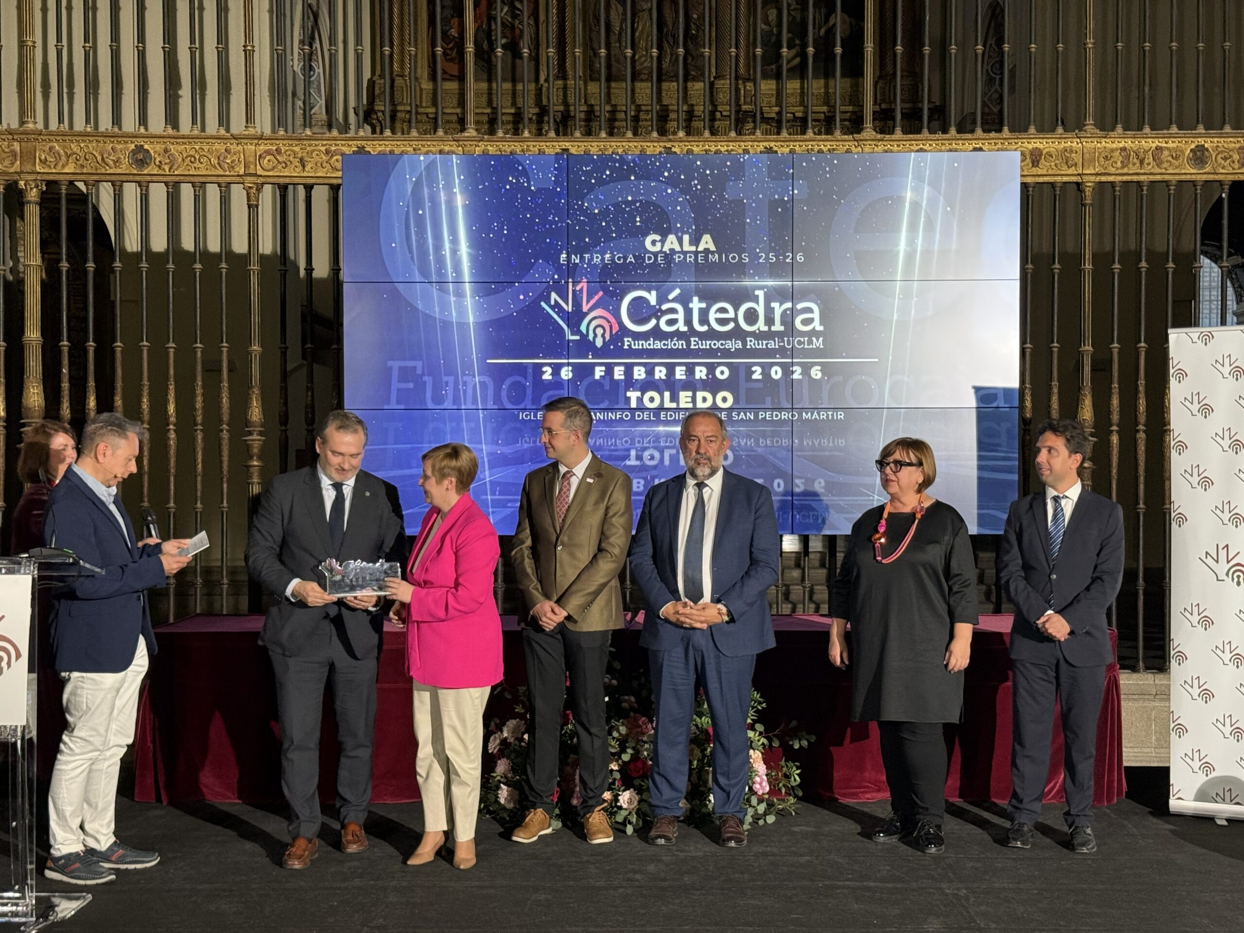 La gala de entrega de premios se celebró ayer día 26 de febrero en la Iglesia-Paraninfo de San Pedro Mártir en Toledo y contó con la participación de representantes de Fundación Eurocaja Rural y de la Universidad de Castilla-La Mancha (UCLM), así como de la dirección académica de la Cátedra.