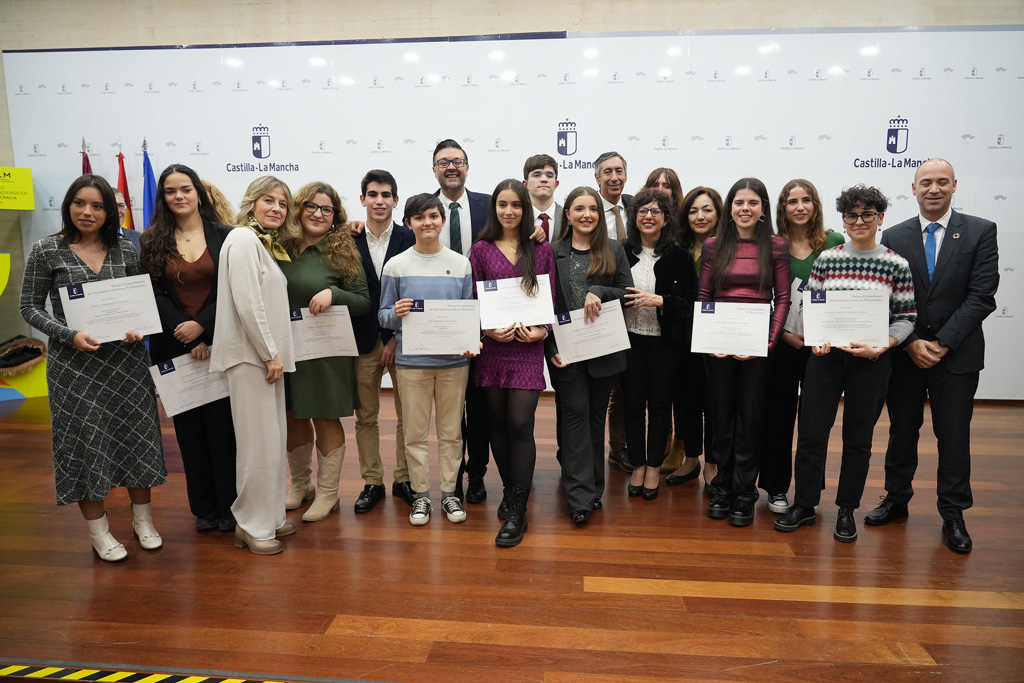 Igualmente han sido premiados Judith Herrera López del Pvips ‘Virgen de la Caridad’ de Illescas; Lucía Jiménez Ballesteros de IES ‘Santa María’ de Alarcos de Ciudad Real; Jesús Lozano Toledo del IES ‘Torreón del Alcázar’ de Ciudad Real; Leyre Martínez Gimeno de la Escuela de Arte de Toledo de Toledo; Daniel Rosso Torres del Pvips ‘Nuestra Señora de los Infantes’ de Toledo; Luna Sánchez Ayuso del IES ‘Luis de Lucena’ de Guadalajara; Lourdes Sánchez Gregorio del Pvips ‘Compañía de María’ de Talavera de la Reina; Verónica Torres Aguirrebengoa de la Escuela de Arte de Albacete de Albacete; e Isaac Ungría Mavlea del IES ‘La Sisla’ de Sonseca.