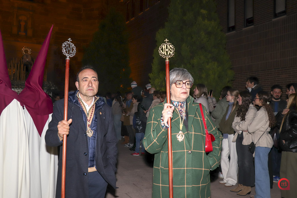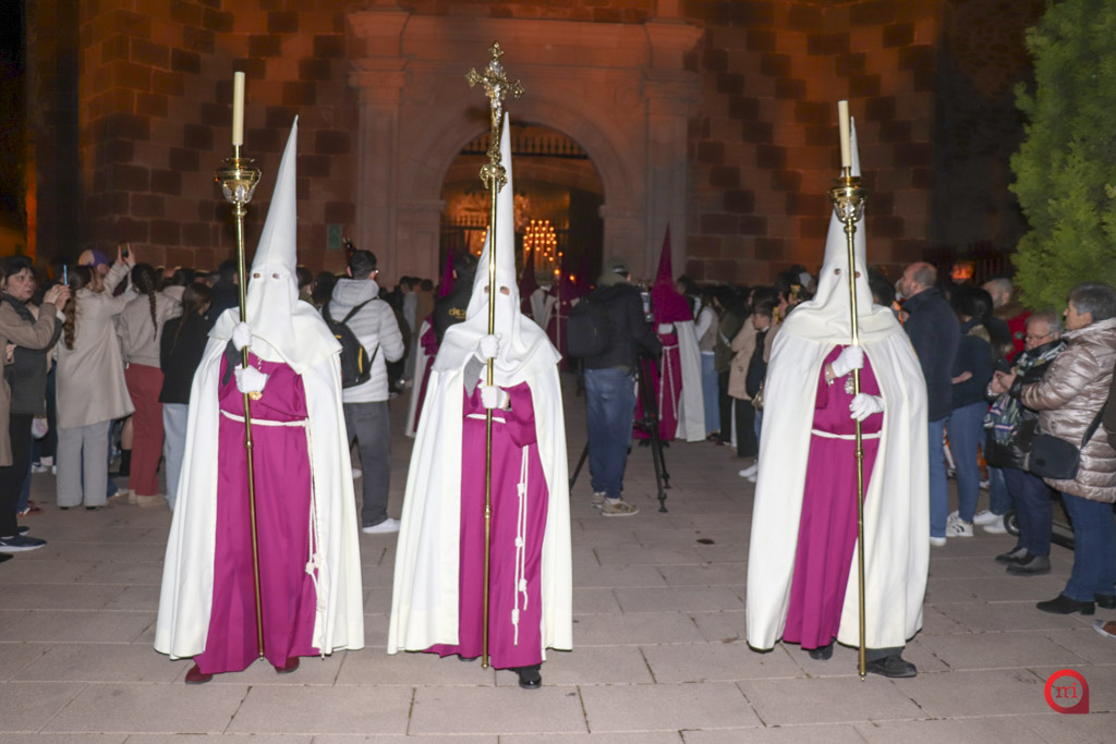 La Cofradía de Jesús Caído, la Verónica y la Dolorosa fue la encargada de poner en la calle esta estación de penitencia que, en torno a las diez de la noche, partió desde el pórtico del Convento de San Francisco, portada por su cuadrilla de costaleros.