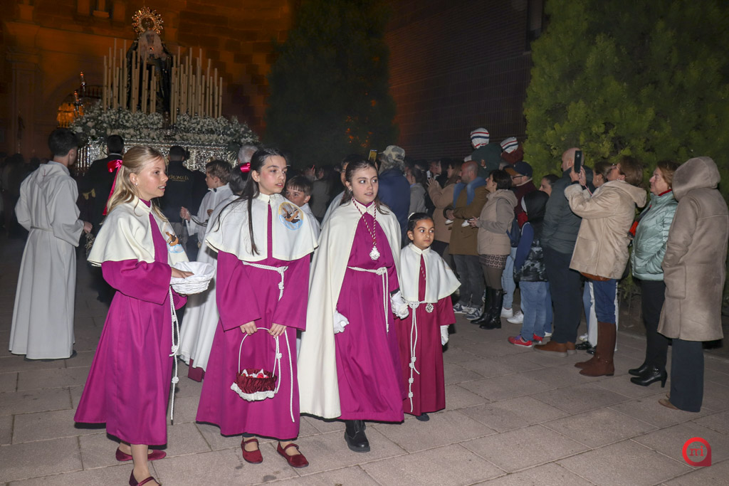 La procesión de la Dolorosa marcó este 27 de marzo el inicio de la Semana Santa de Alcázar de San Juan, dando comienzo oficial a la programación en la noche del Viernes de Dolores con la salida de la imagen mariana.
