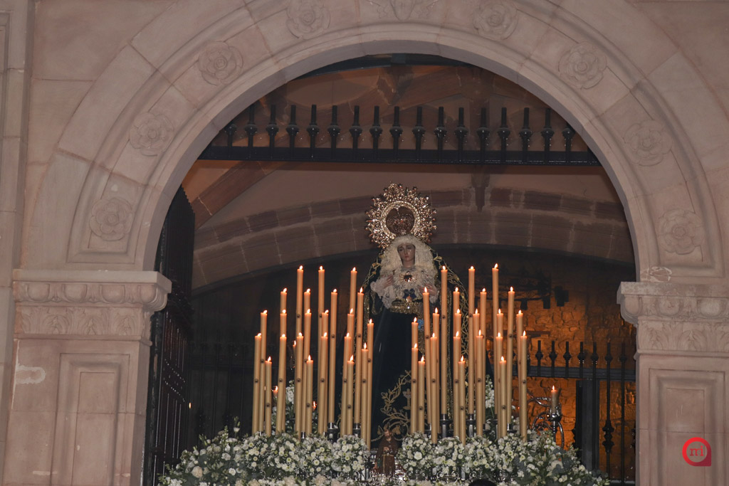 El cortejo de la Dolorosa recorrió el itinerario tradicional por Altozano de la Inmaculada, San Francisco, Plaza de España, Emilio Castelar, Miguel Barroso, Unión y Doctor Policarpo Lizcano, para regresar finalmente al punto de partida, dejando estampas de recogimiento y devoción a lo largo de todo el recorrido.