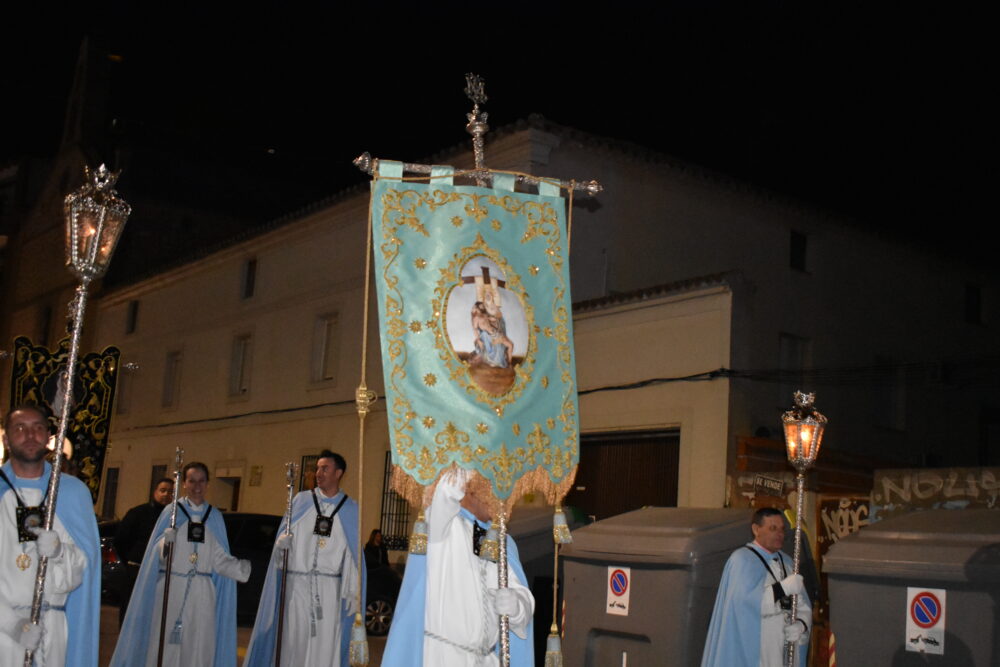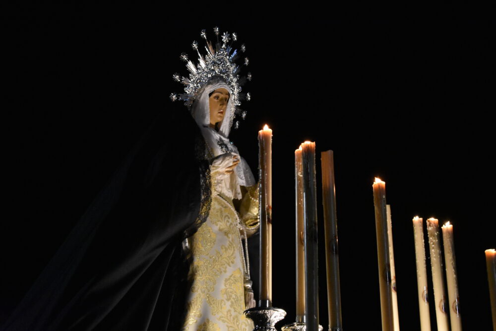 Tras la celebración de la Solemne Vigilia Pascual en los distintos templos, ya en la madrugada, dieron comienzo de forma simultánea ambas procesiones. Por un lado, la imagen de la Virgen Dolorosa, portada por la Cofradía de las Angustias, partía desde la Plaza de San Sebastián acompañada por sus estandartes y por la Banda Sinfónica Municipal, dirigida por Sebastián Heras Romero.