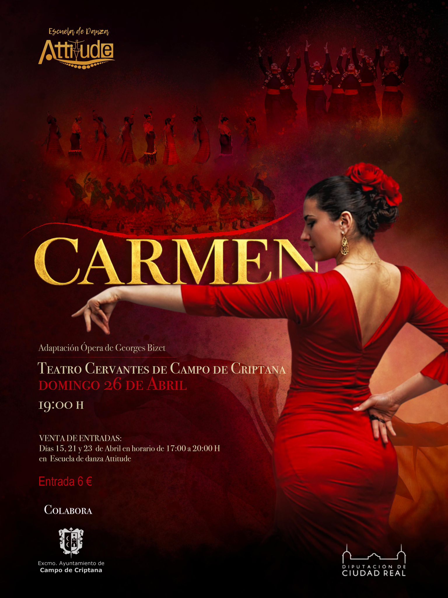 La escuela de danza Attitude vuelve a subirse a los escenarios con su tradicional espectáculo flamenco de abril, una cita ya consolidada en la agenda cultural de Campo de Criptana. En esta edición, Inma Ortiz presenta una adaptación de la célebre ópera Carmen, del compositor francés Georges Bizet.