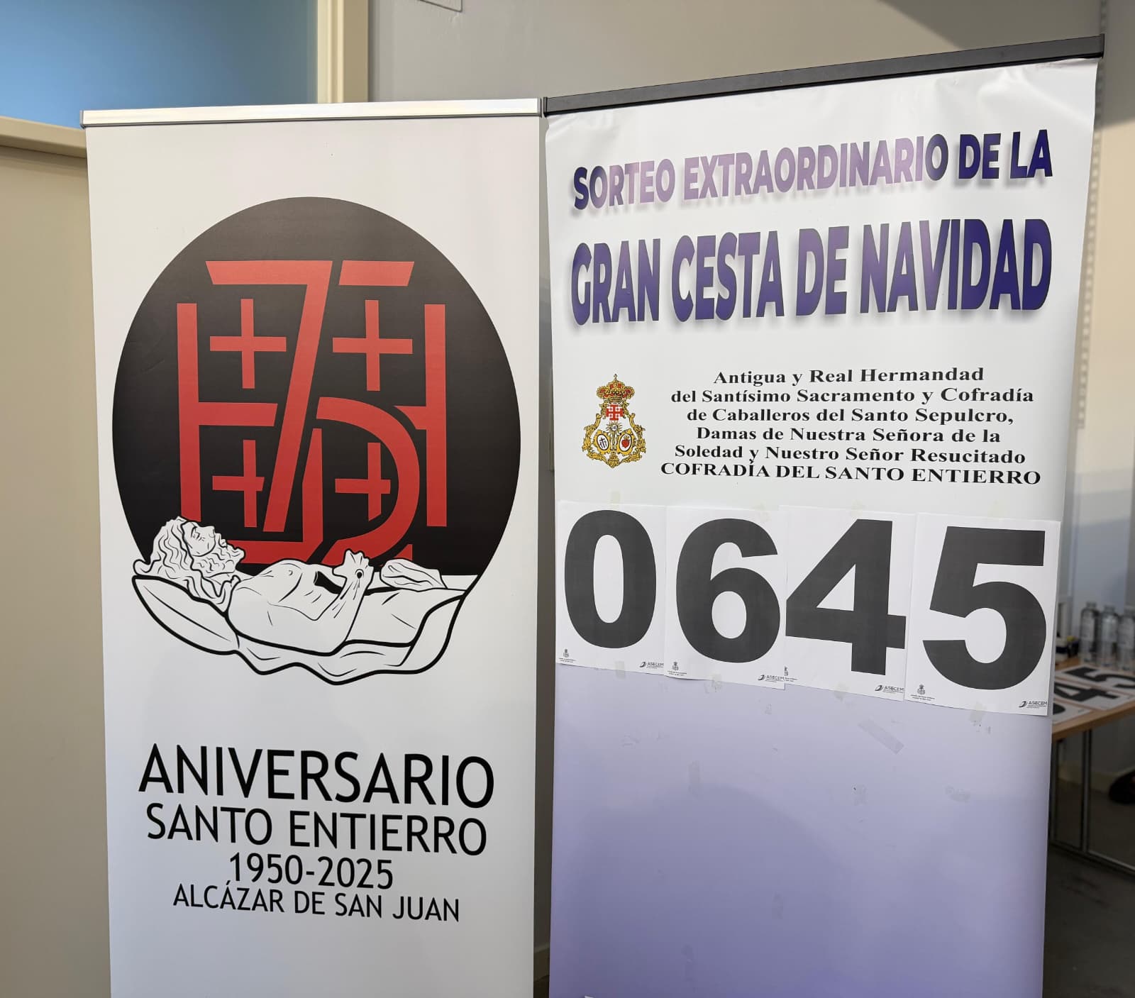 La Cofradía del Santo Entierro de Alcázar de San Juan ha llevado a cabo esta mañana el tradicional sorteo de su Gran Cesta de Navidad, un evento que ya forma parte de la programación festiva de la ciudad durante estas fechas.