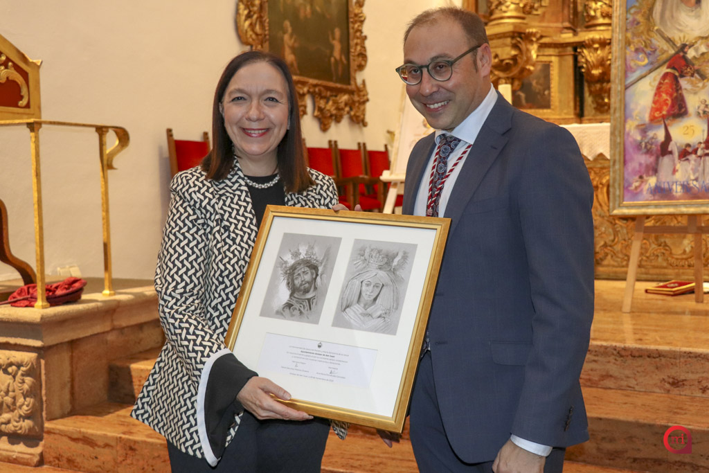 También fue presentado el cartel conmemorativo, realizado por Guillermo Soto, quien relató lo laborioso del proceso creativo hasta llegar a una imagen que refleja fielmente la estación de penitencia de la Hermandad. El artista reveló que la inspiración final llegó al recordar a su abuela, “artífice de mi fe y devoción por la Virgen de la Salud y Jesús del Perdón”.