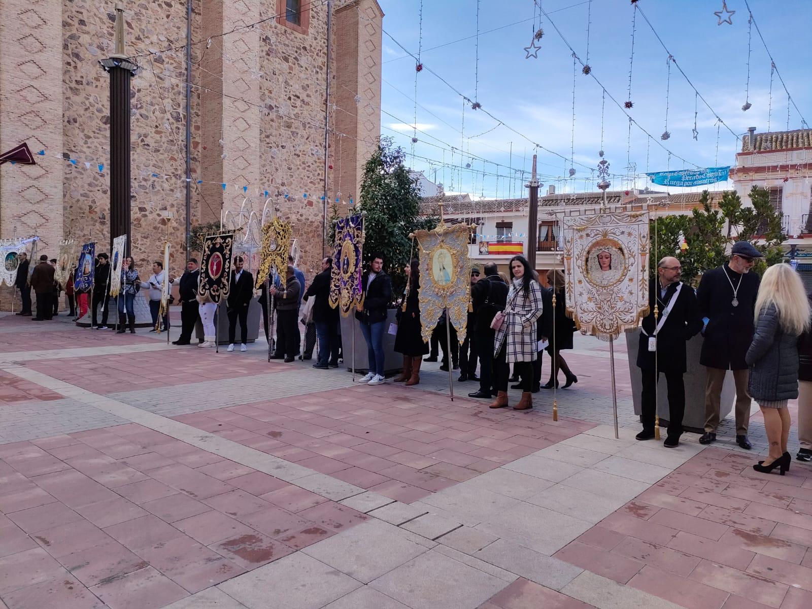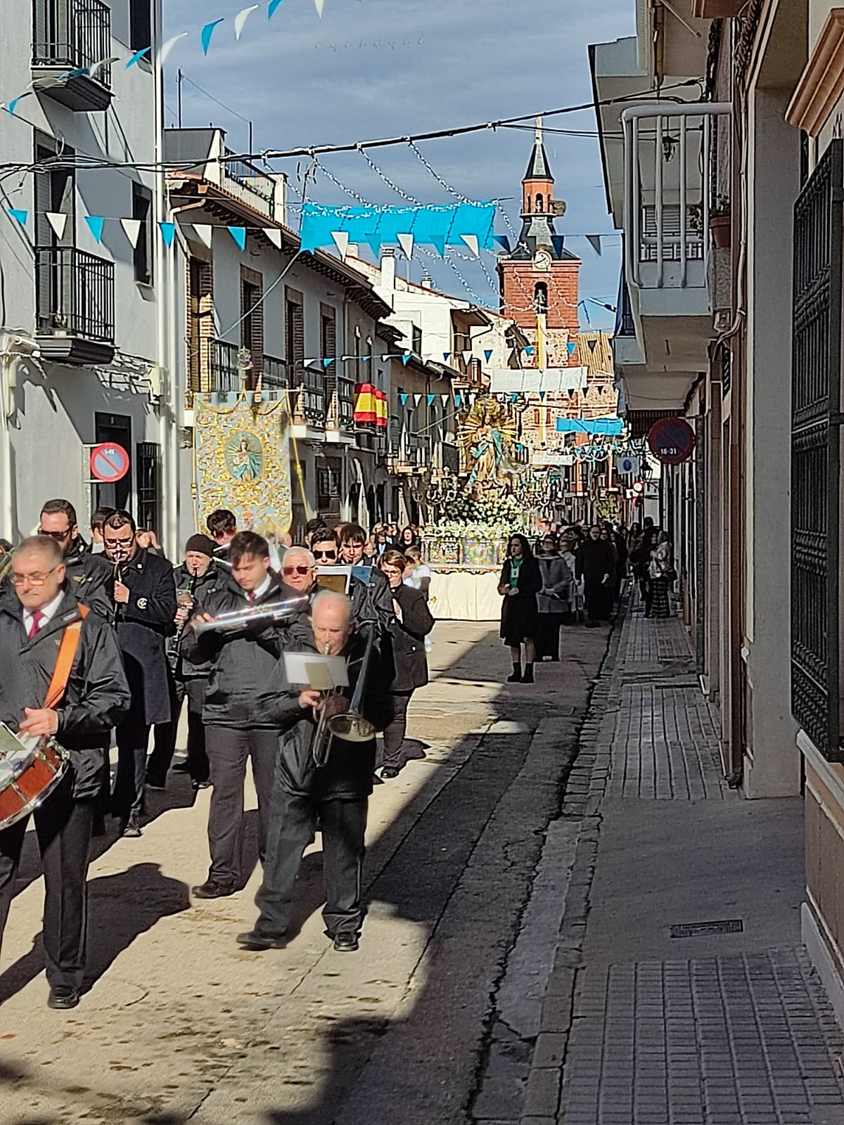 La Inmaculada Concepción, patrona de Herencia, procesionó un año más por las calles del municipio este viernes 8 de diciembre. El mal tiempo y el frío hicieron una parada en la mañana en la localidad ciudadrealeña para que su patrona saliese en procesión.