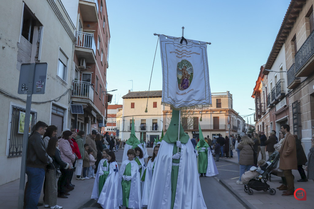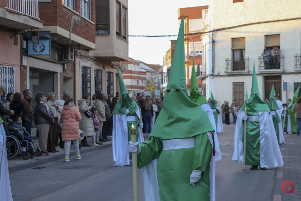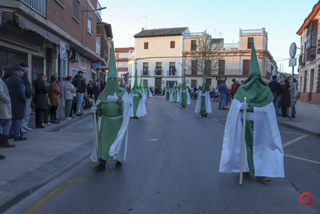 La tarde del Jueves Santo en Alcázar de San Juan volvió a teñirse de verde y blanco con la salida procesional de Jesús Orando en el Huerto, una de las estampas más características de la Semana Santa local. A las ocho en punto, desde el pórtico de la Iglesia de la Santísima Trinidad, arrancaba la estación de penitencia de la Hermandad Ferroviaria de Nuestra Señora de Gracia y Patriarca San José y Cofradía de Nazarenos de Jesús Orando en el Huerto, conocida popularmente como “Los Ferroviarios”.