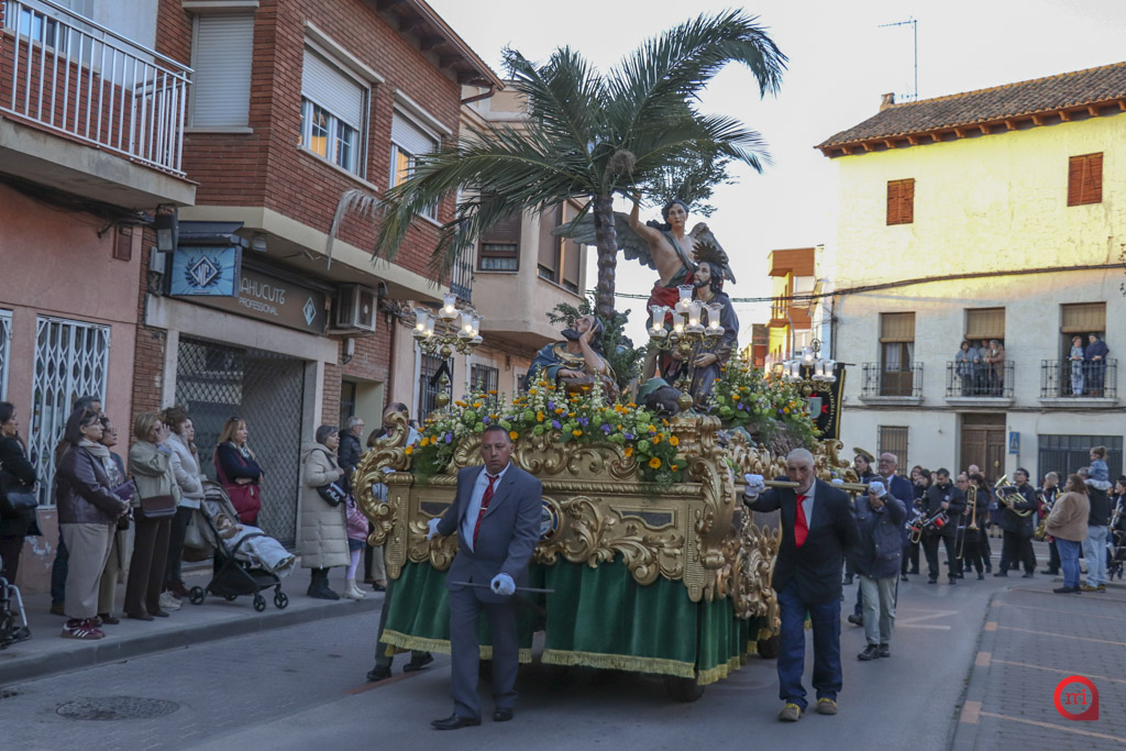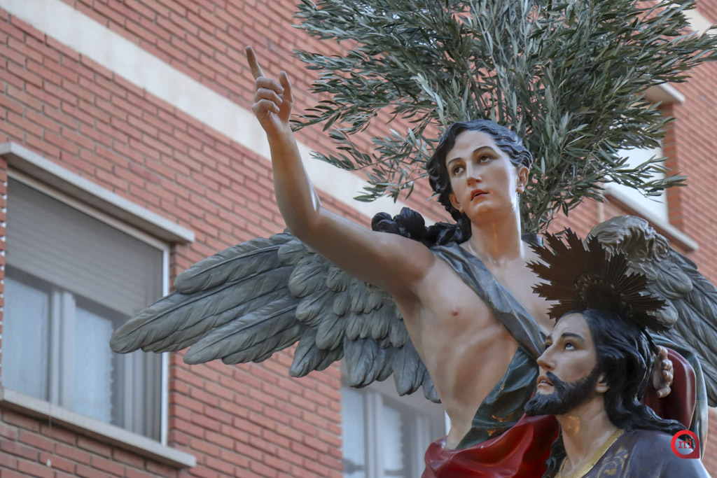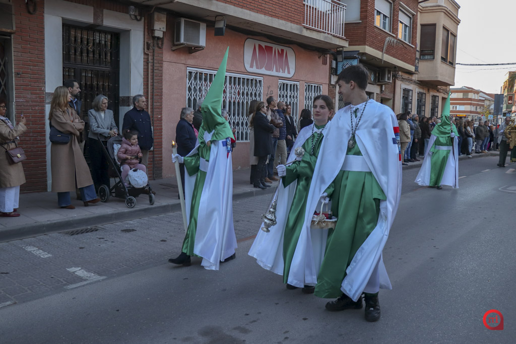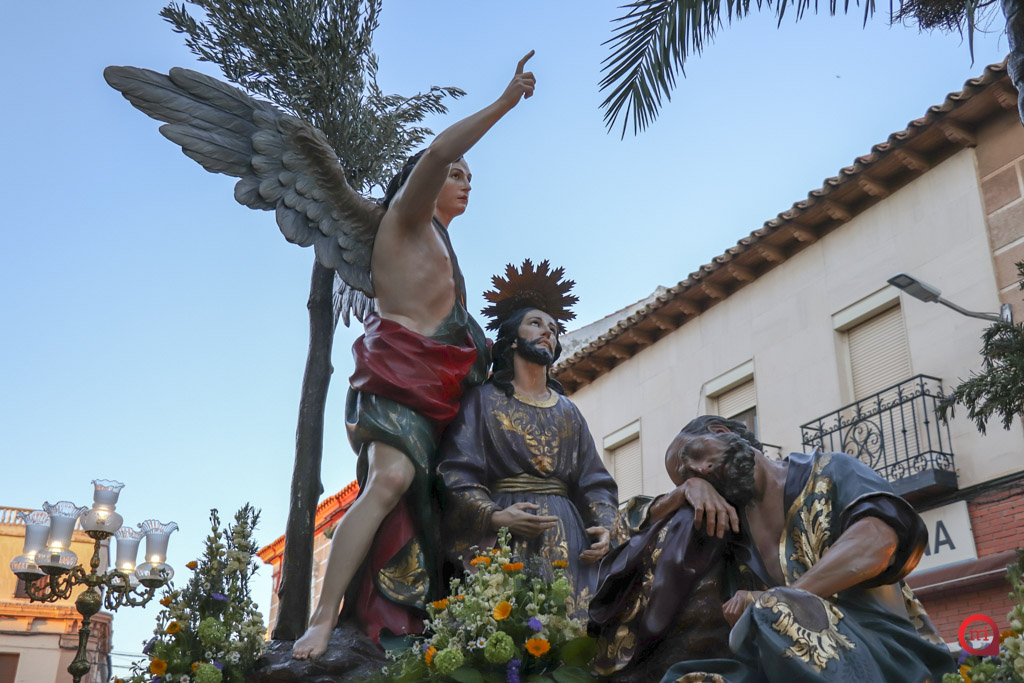 El cortejo estuvo presidido por el paso de Jesús Orando en el Huerto, en el que destacan las imágenes de Jesús en oración y el Ángel Confortador, acompañados por las figuras de los apóstoles, componiendo una escena de gran fuerza simbólica y devocional. Desde su salida, una gran cantidad de público se congregó en las inmediaciones del templo trinitario, siguiendo también con atención todo el recorrido de la procesión durante la tarde-noche.