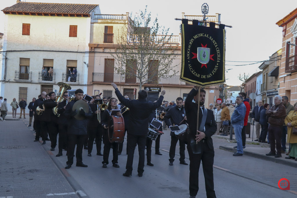 El acompañamiento musical corrió a cargo de la Asociación Musical Santa Cecilia de Alcázar de San Juan, cuyos sones aportaron solemnidad al desfile. Completaron la estación de penitencia autoridades eclesiásticas y civiles, representantes de hermandades y cofradías, junto a numerosos devotos que acompañaron con recogimiento este momento tan señalado del Jueves Santo alcazareño.