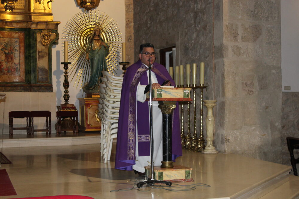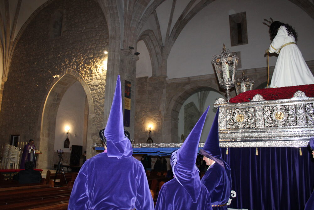 Antes del amanecer, numerosos vecinos y visitantes se congregaban en la Parroquia Santiago de la Espada para asistir al Sermón de la Pasión, pronunciado por el Párroco de la localidad, D. Ángel Manuel Salazar, quien estuvo arropado por una iglesia abarrotada y en recogimiento.