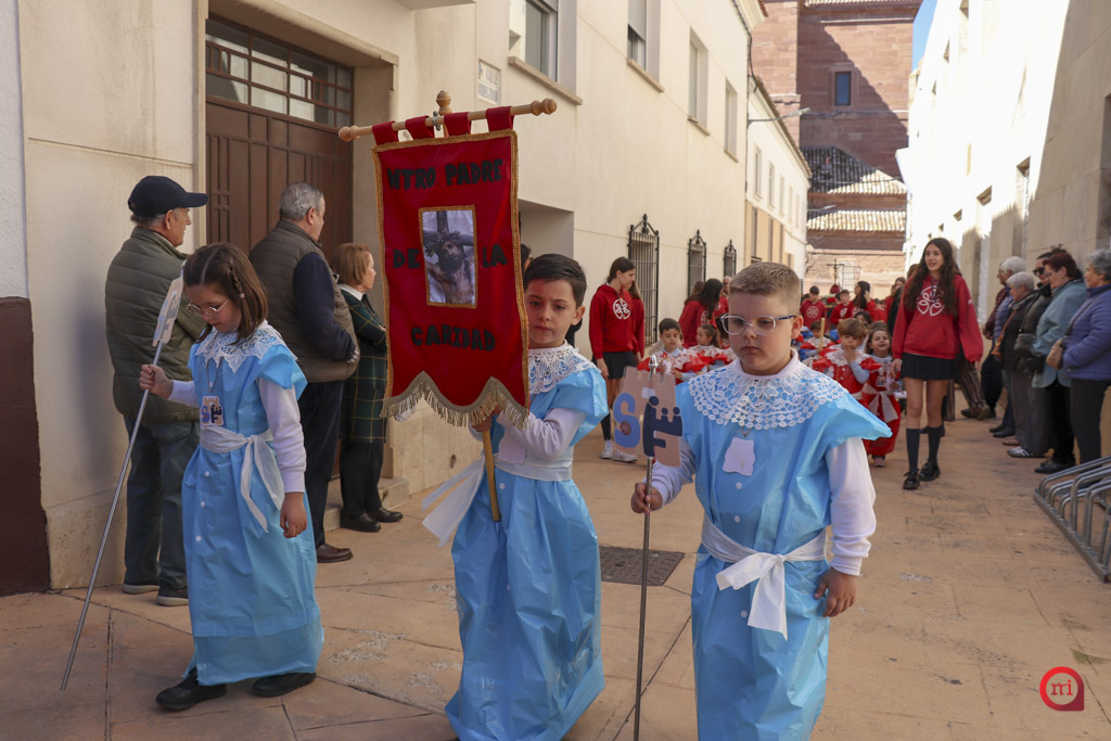 La comunidad educativa del Colegio Sagrada Familia de Alcázar de San Juan ha celebrado un año más su tradicional procesión infantil en honor a Nuestro Padre de la Caridad y Nuestra Señora de la Ternura. El desfile, que recorre las calles cercanas al centro educativo, contó con la participación de alumnos desde Infantil hasta Educación Secundaria Obligatoria, así como de profesores y familiares, convirtiéndose en un acto de fe, transmisión de valores y fomento de la tradición.