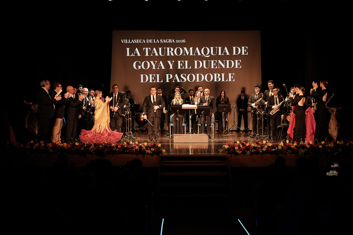 Villaseca de la Sagra vivió la noche del domingo 1 de marzo una de las veladas más singulares y culturales de sus XXV Jornadas Taurinas, con la celebración del espectáculo “La tauromaquia de Goya y el duende del pasodoble”, una propuesta que fusionó música, danza y sentimiento taurino en el Auditorio Juan Pascual de Mena.
