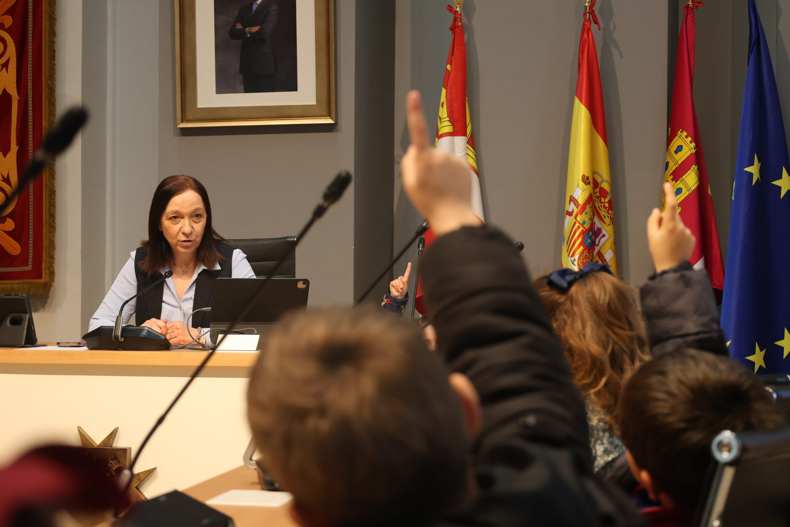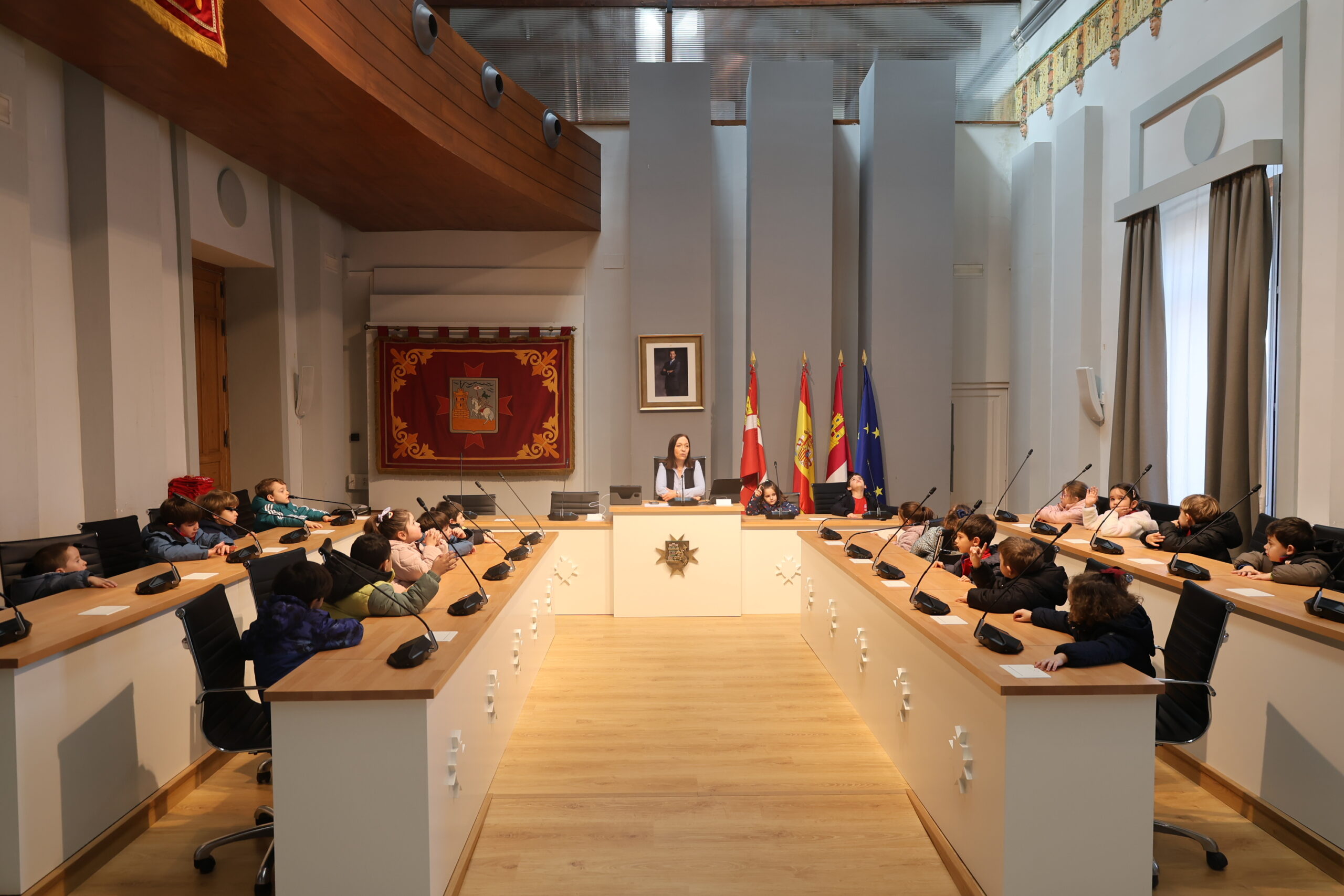 La alcaldesa, Rosa Melchor, ha ejercido de anfitriona recibiendo a los pequeños en el Salón de Plenos. En un ambiente distendido y cercano, los niños y niñas han ocupado los asientos de los concejales y han convertido el espacio en un foro de curiosidad, en el que han podido plantear preguntas de lo más variopintas, interesándose por el camino que recorrió Melchor para llegar a ser alcaldesa o qué gestiones realiza en su día a día para hacer de Alcázar de San Juan un lugar mejor.