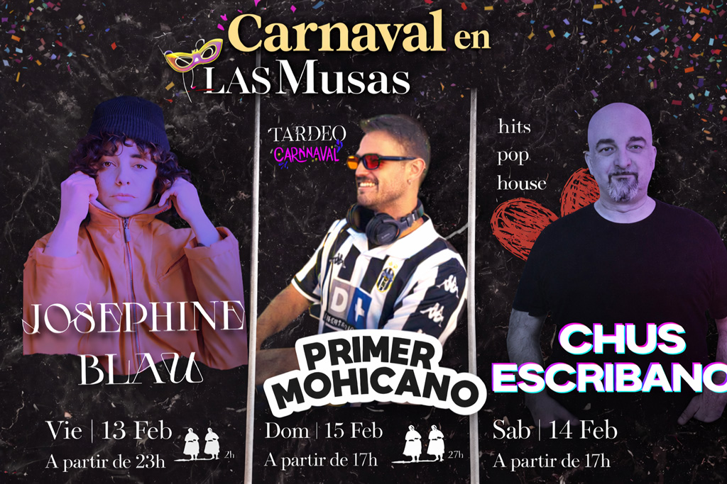 El fin de semana se cerrará el domingo de Carnaval con la presencia de Primer Mohicano (Eduardo Escribano), habitual en Las Musas, que aportará frescura y una cuidada selección musical en una jornada festiva marcada por el ambiente alegre del Carnaval.