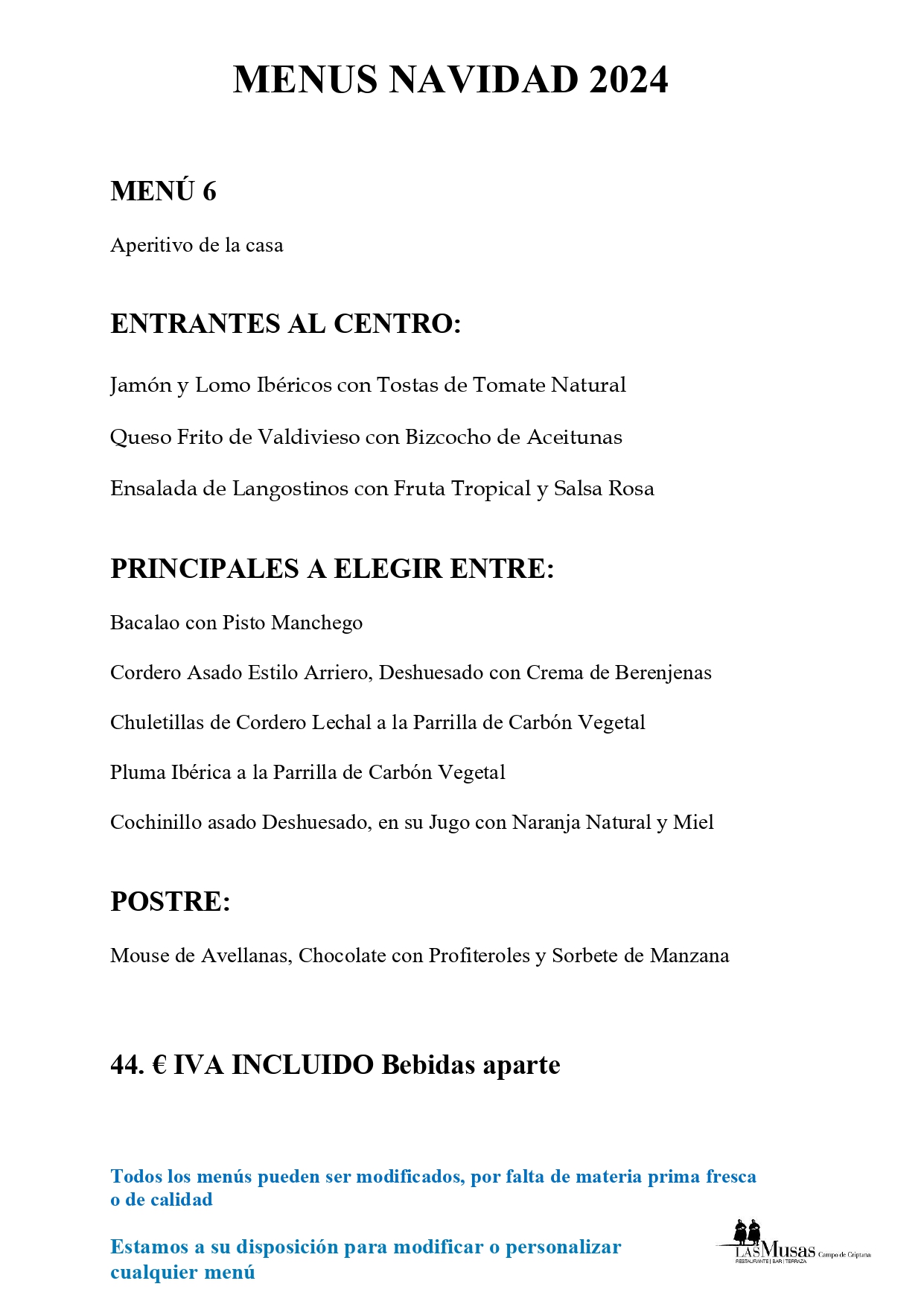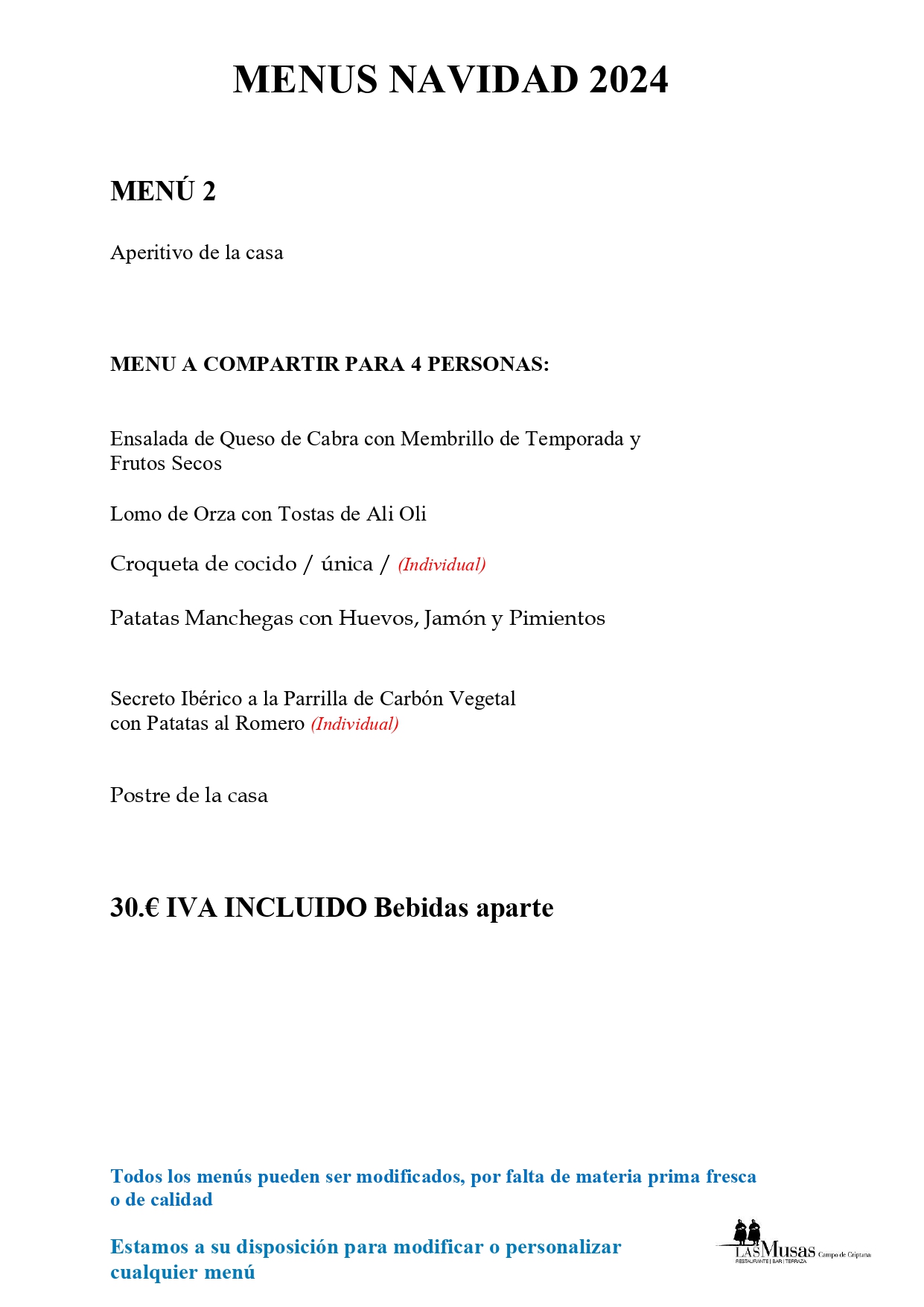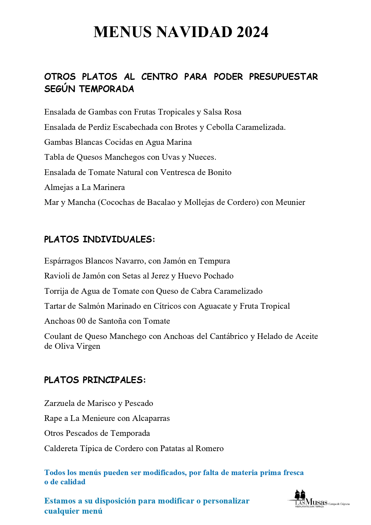 La reserva puedes realizarla a través de este enlace, del teléfono 926 58 91 91 o del correo electrónico info@restaurantelasmusas.com. Estos son los menús que ofrecen para estas fechas: