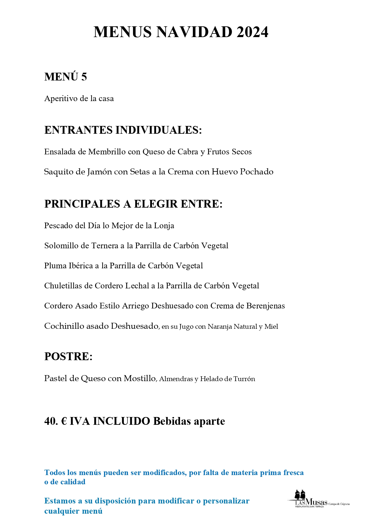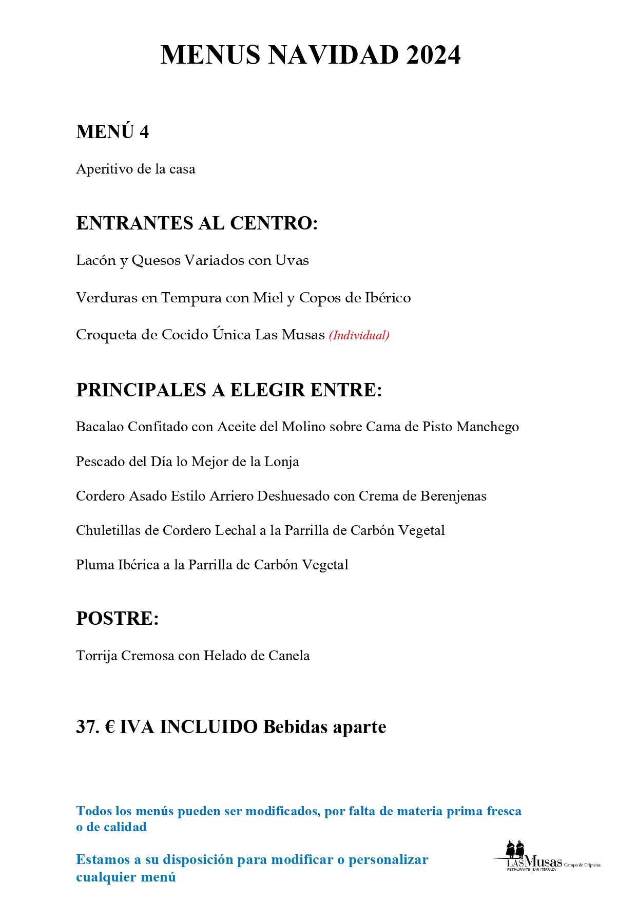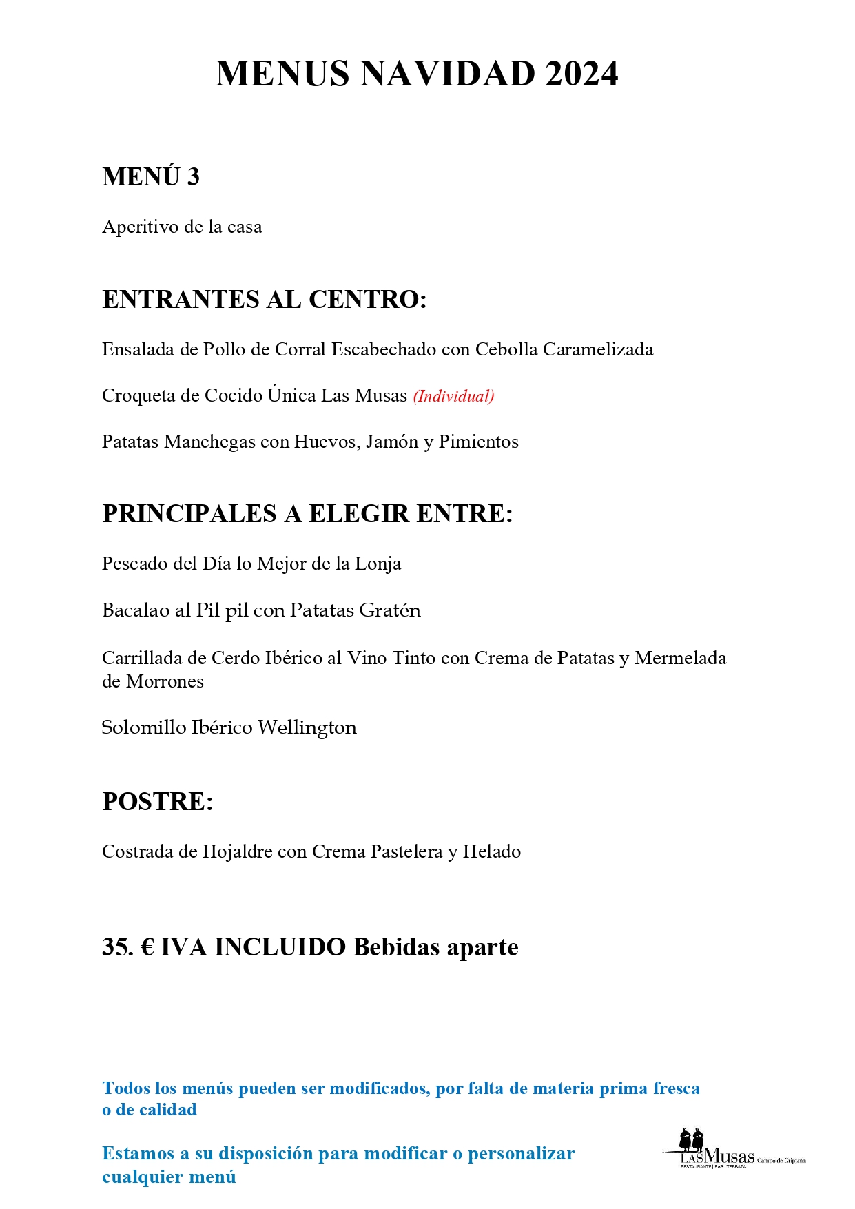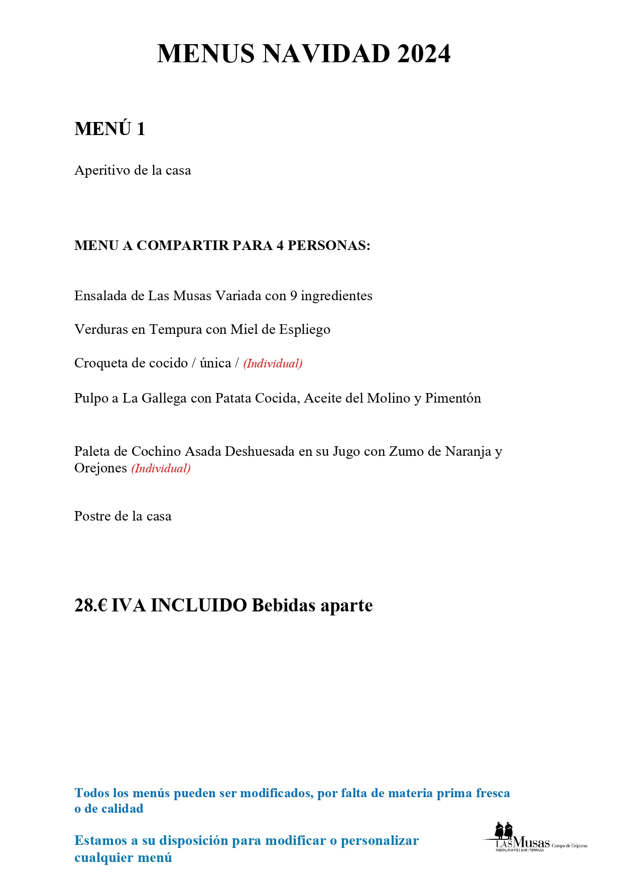 La reserva puedes realizarla a través de este enlace, del teléfono 926 58 91 91 o del correo electrónico info@restaurantelasmusas.com. Estos son los menús que ofrecen para estas fechas: