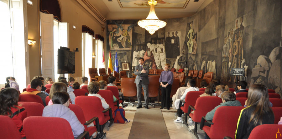 El Palacio Provincial ha recibido a estudiantes de Educación Primaria procedentes del CEIP Félix Grande, en Tomelloso, que ahora conocen la Administración presidida por Miguel Ángel Valverde mucho mejor.