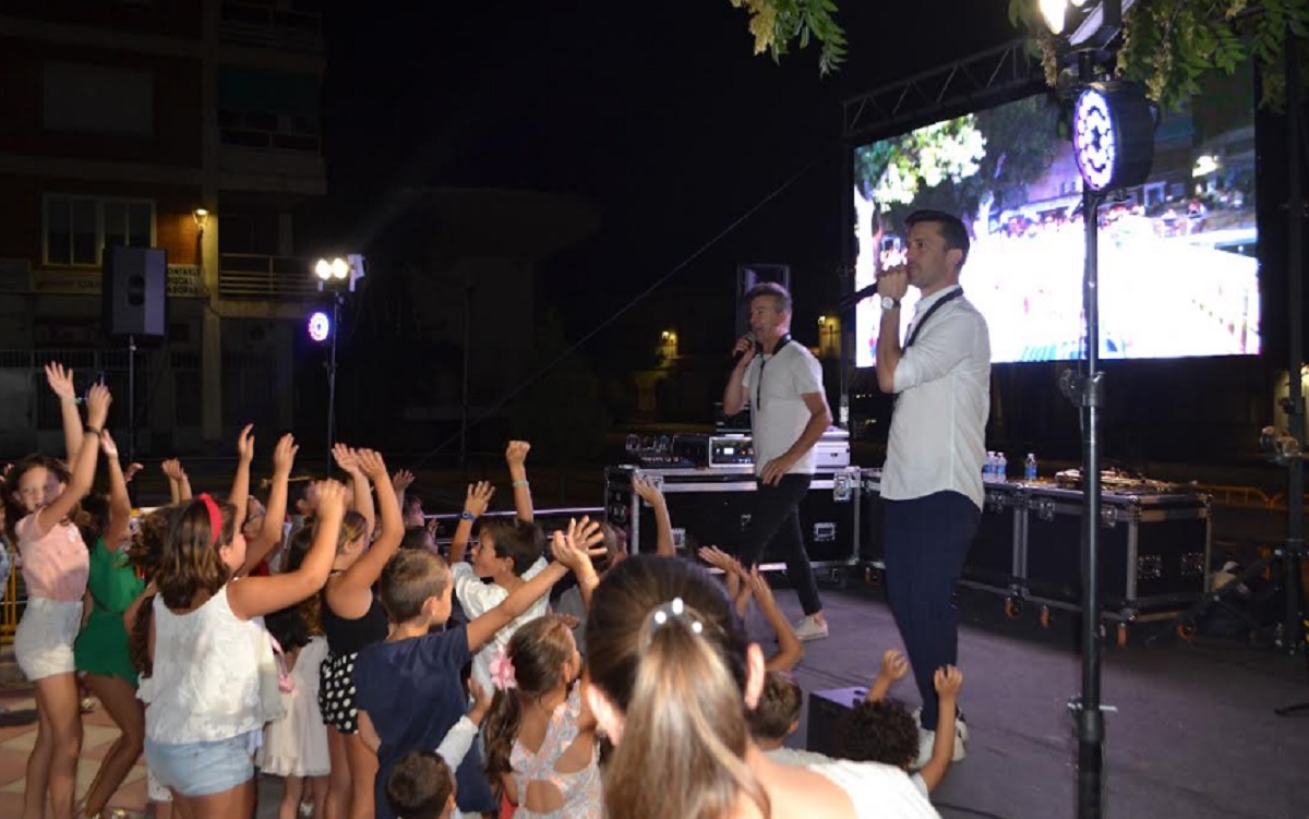 El pasado fin de semana tuvo lugar la actuación de los Hermanos Dorado, dos saxofonistas con una propuesta musical muy ecléctica que combina grandes clásicos de la música con canciones actuales. Los hermanos, que ya habían tocado en Miguel Esteban en ocasiones anteriores, no se limitaron a actuar sobre el escenario y bajaron de las tablas para pasear tocando entre el público y las terrazas animando con su música a mayores y pequeños. El público, que estuvo entregado a la música de los saxofonistas, terminó el concierto con una ovación para los artistas que agradecieron a los migueletes su calor y mostraron su gratitud por poder tocar de nuevo en el municipio. “Los Hermanos Dorados siempre que nos visitan no dejan indiferente a nadie, los vecinos disfrutan con su entretenida propuesta musical y desde el Ayuntamiento les invitamos a venir porque sabemos que son una apuesta segura para disfrutar de la música”, declaró Eugenio Caravaca, concejal de Cultura de Miguel Esteban.