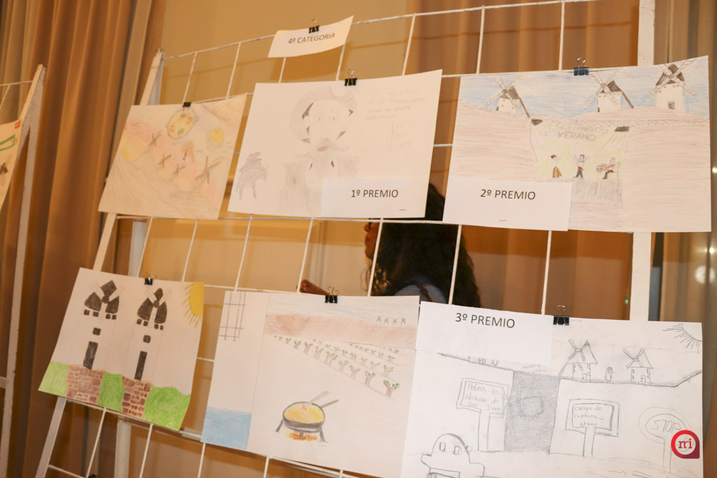 Los pequeños artistas, repartidos por edades en diferentes categorías, plasmaron en sus lienzos la arquitectura, gastronomía, paisajes y personajes emblemáticos de La Mancha, como Don Quijote y Sancho Panza, así como el folklore propio de la Asociación. Edificios históricos como el Torreón, el Ayuntamiento y los molinos de viento se convirtieron en protagonistas de la mirada creativa e inocente de los niños.