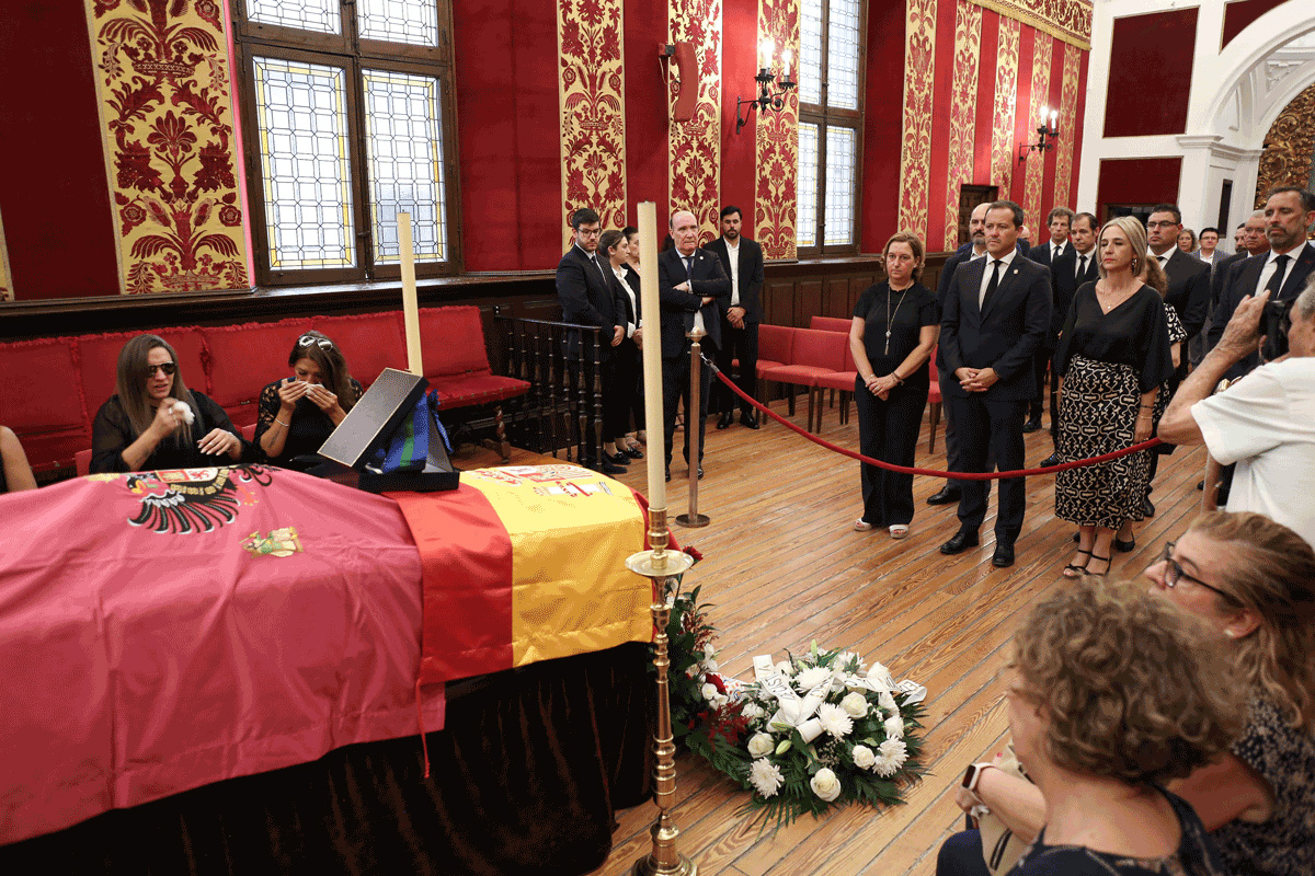 La presidenta de la Diputación de Toledo, Conchi Cedillo, y el alcalde de Toledo, Carlos Velázquez, visitan la capilla ardiente con los restos mortales de Federico Martín Bahamontes, instalada en el Ayuntamiento de Toledo, para dar el último adiós a “uno de nuestros deportistas más universales» y para ofrecer sus condolencias a sus familiares y amigos.