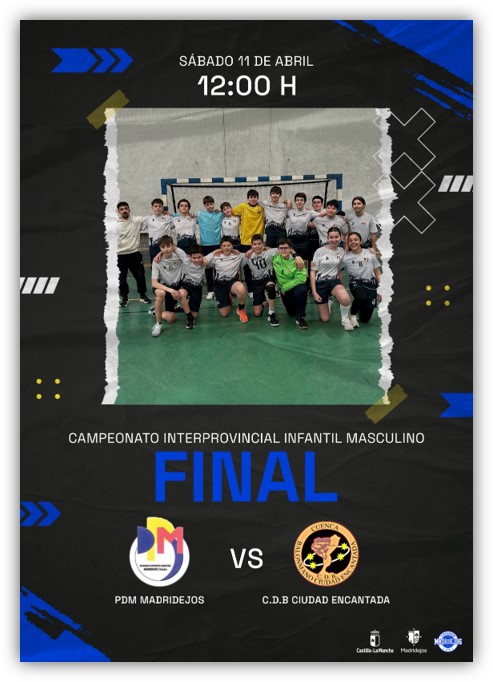 El próximo sábado 11 de abril a las 12:00 horas en el pabellón municipal de Madridejos se disputará la final de la liga interprovincial de balonmano, con la participación de nuestro equipo infantil contra el equipo Ciudad Encantada A (Cuenca).
