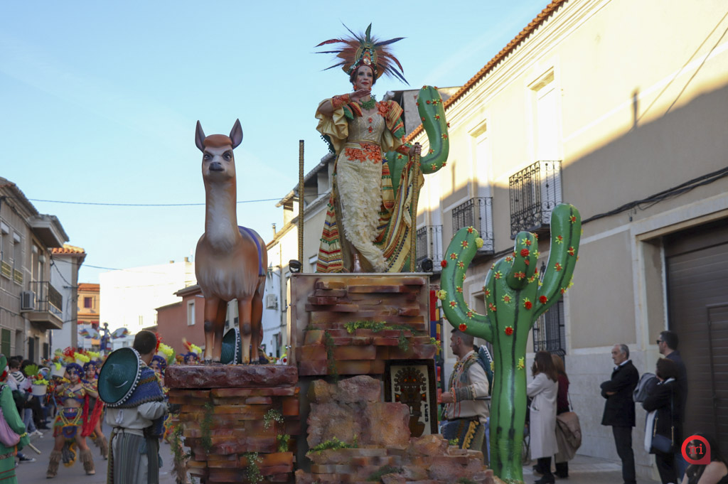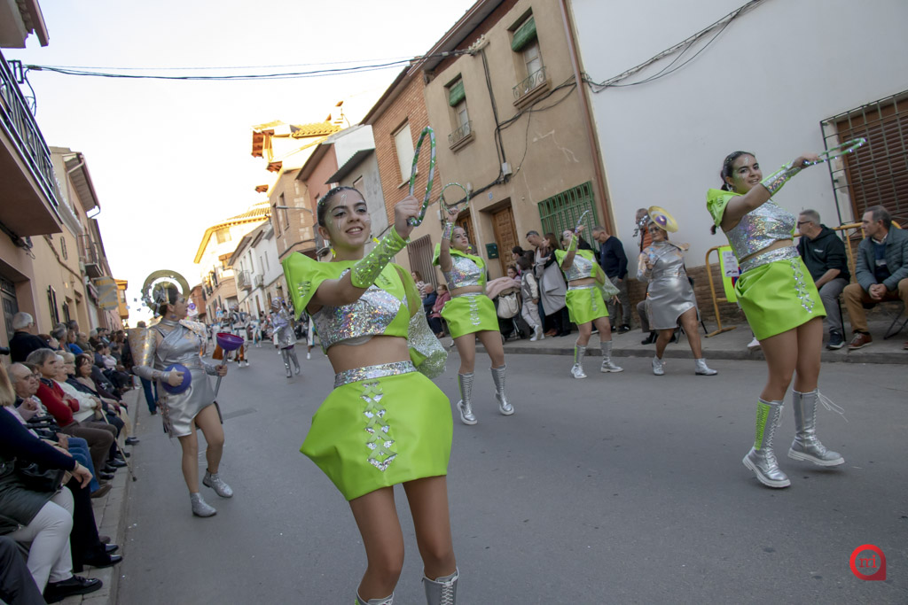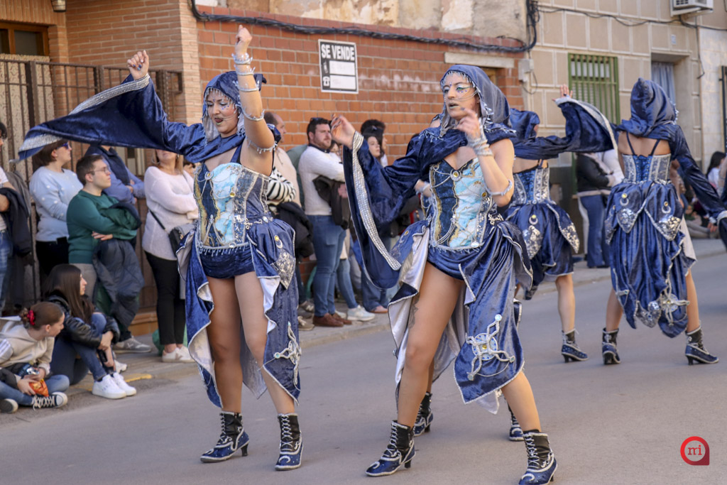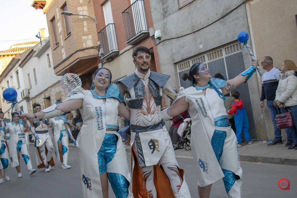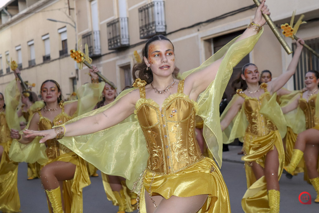 Un total de 13 de las 14 comparsas inscritas participaron finalmente en el desfile, al no poder asistir la comparsa Dimarty Dance Studio de Campo de Criptana. La apertura del cortejo corrió a cargo de la peña Los Amigos, llegada desde Tomelloso, con su propuesta “El Secreto de las profundidades”. En segundo lugar desfiló la peña La Jarana, de Puerto Lápice, con “El sueño dorado, el resurgir de Tula”, seguida por la Asociación Cultural Los Reconocidos, de Puertollano, que presentó “El Mundo de Agrabah”.