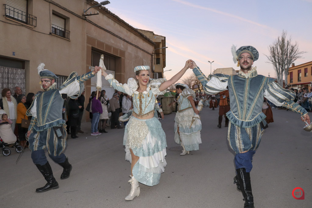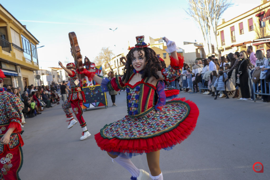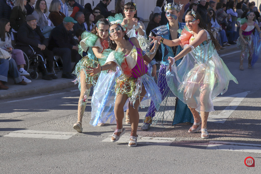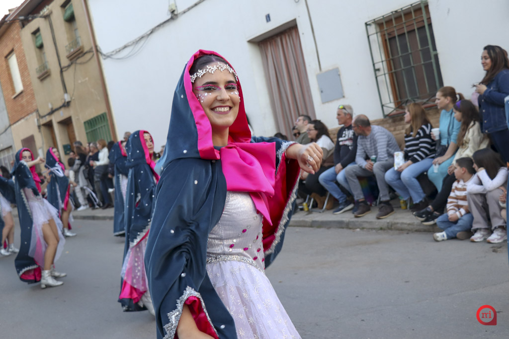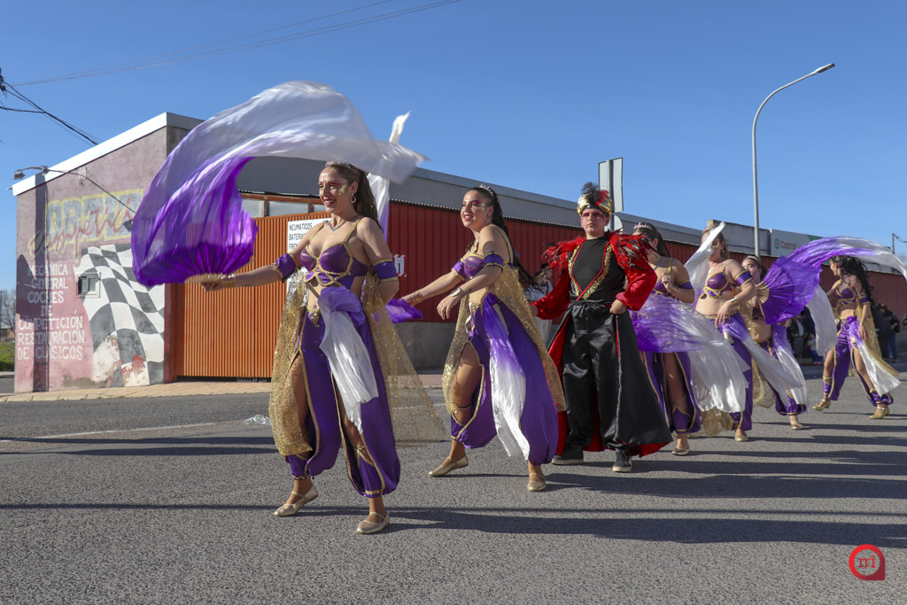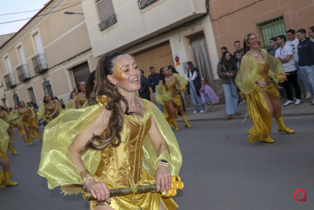 Un total de 13 de las 14 comparsas inscritas participaron finalmente en el desfile, al no poder asistir la comparsa Dimarty Dance Studio de Campo de Criptana. La apertura del cortejo corrió a cargo de la peña Los Amigos, llegada desde Tomelloso, con su propuesta “El Secreto de las profundidades”. En segundo lugar desfiló la peña La Jarana, de Puerto Lápice, con “El sueño dorado, el resurgir de Tula”, seguida por la Asociación Cultural Los Reconocidos, de Puertollano, que presentó “El Mundo de Agrabah”.