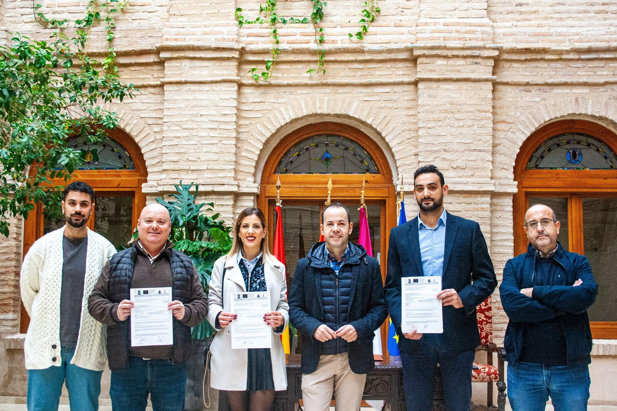 Durante este miércoles 15 de noviembre, el patio del Ayuntamiento de Herencia ha sido testigo de un acto de formalización de dos contratos protagonizado por el grupo de acción local Mancha Norte: Desarrollo e Innovación -compuesto por los municipios de Tomelloso, Alcázar de San Juan, Campo de Criptana, Pedro Muñoz, Herencia, Arenales de San Gregorio y Socuéllamos, bajo la dirección de su presidente Alberto Lara-.